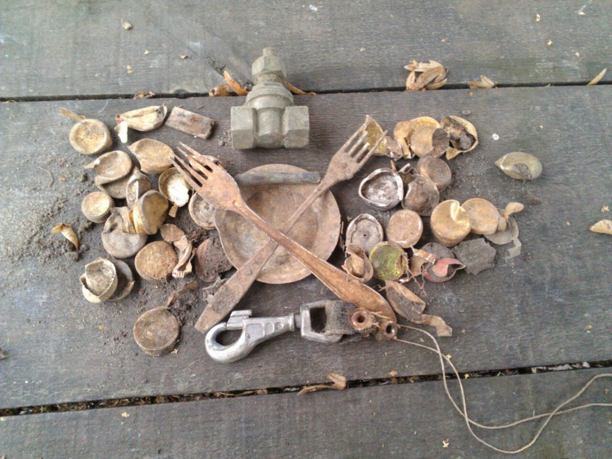 На Трухановом территория довоенного поселения просто жесть. Кирпичи, железо звенит непрерывно. Кто-то что-то упорно там копал. Ну, я х.з., проще затонувшую баржу на металл сдать, чем так убиваться. Ну, понятно, там и война и антикварные ништяки, городок с землей сровняли. Густо пересыпано кирпичем и воет всплошную. После пары часов мучений сместились в зону отдыха, в прикупе несколько советиков. Пляжи пустые, точнее, ну его нафиг, если и буду пляж копать, то на Карибах, у нас холодно и вместо голых девок бомжи с прутами...