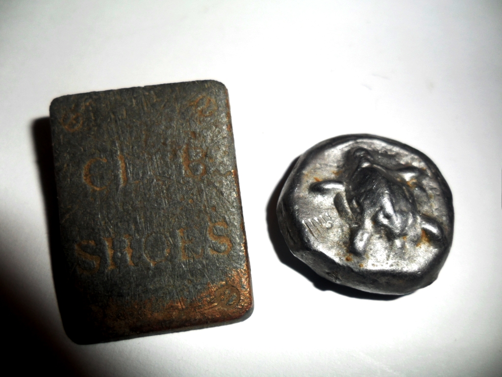 Вижу монету статер , если не подводит память ) вот похожая http://royalcoins.ru/numizmatic-first_coins.html Не олово , а серебро , возможно электрум