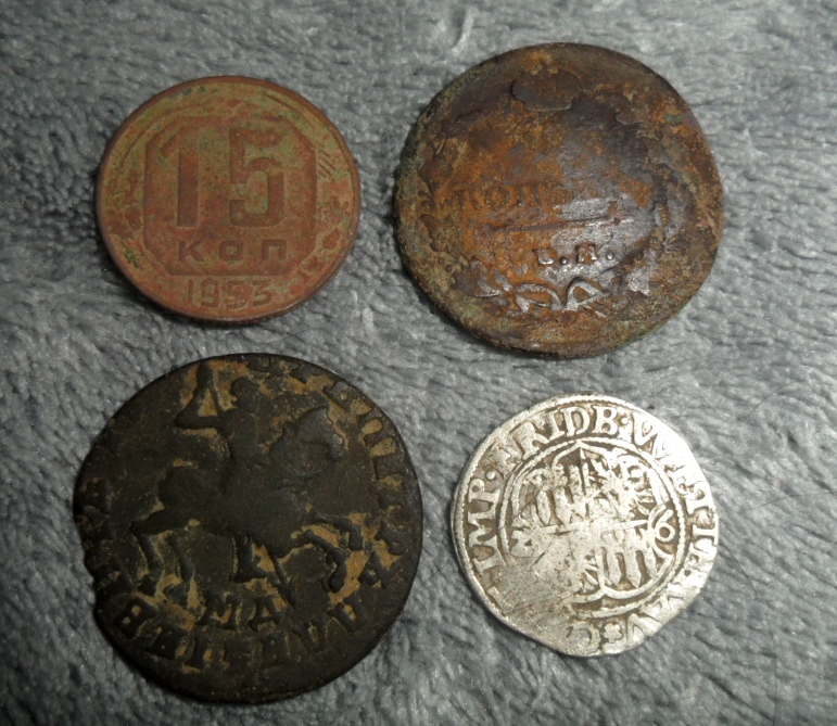 Добрый вечер, Камераден! Сегодня копнули под Киевом. Из приятного, меня порадовала петровская копейка и серебрушка, на такие находки вообще не расчитывал. А у камрада вылез катькин пятак и казацкий топор. С утра копать вообще было нереально, земля от мороза была как асфальт, но потом более-менее оттаяло. Кто шарит, подскажите пожалуйста по серебрянной монетке, каких годов, таких еще не находил. Всем хорошего вечера!