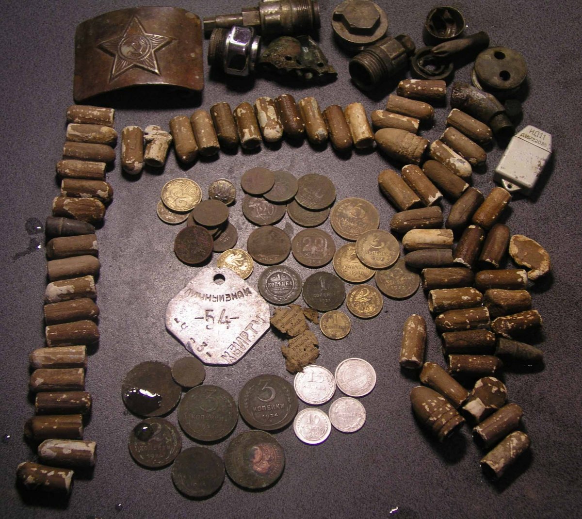 А меня вот Романовка не отпускает, день в лесу. Если не брать во внимание совковую мелочь, и всякий хлам в виде пуль две находочки все же порадовали. Гильза от патрона Мосина 1916 г. Американского производства, сохран не плохой как на возраст, маркировки на месте, и патрончик целенький, от чего еще не разобрался, видно что винтовочный, калибр менше 7.62, маркировки НЕТ. Но сохранчик хороший...