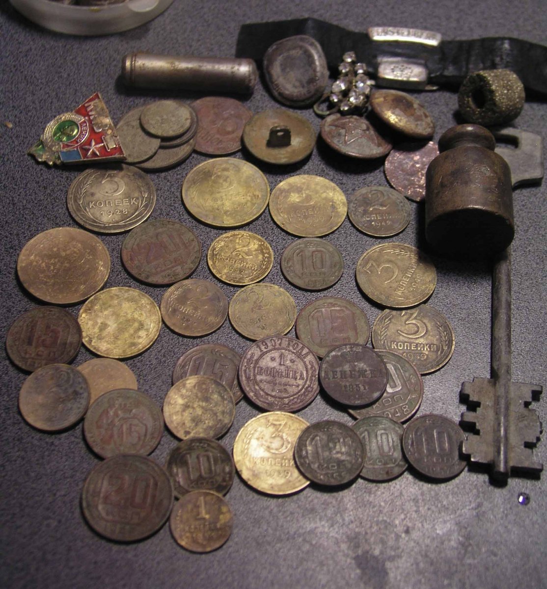 Доброго вечора.ось копнув в суботу,2-і годинки,а далі дощь.Все знайдено на одній полянці...доречі,совет знайшов під консервною банкою...