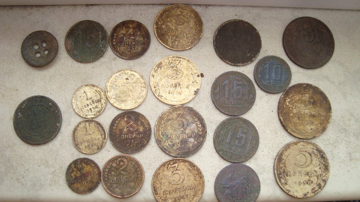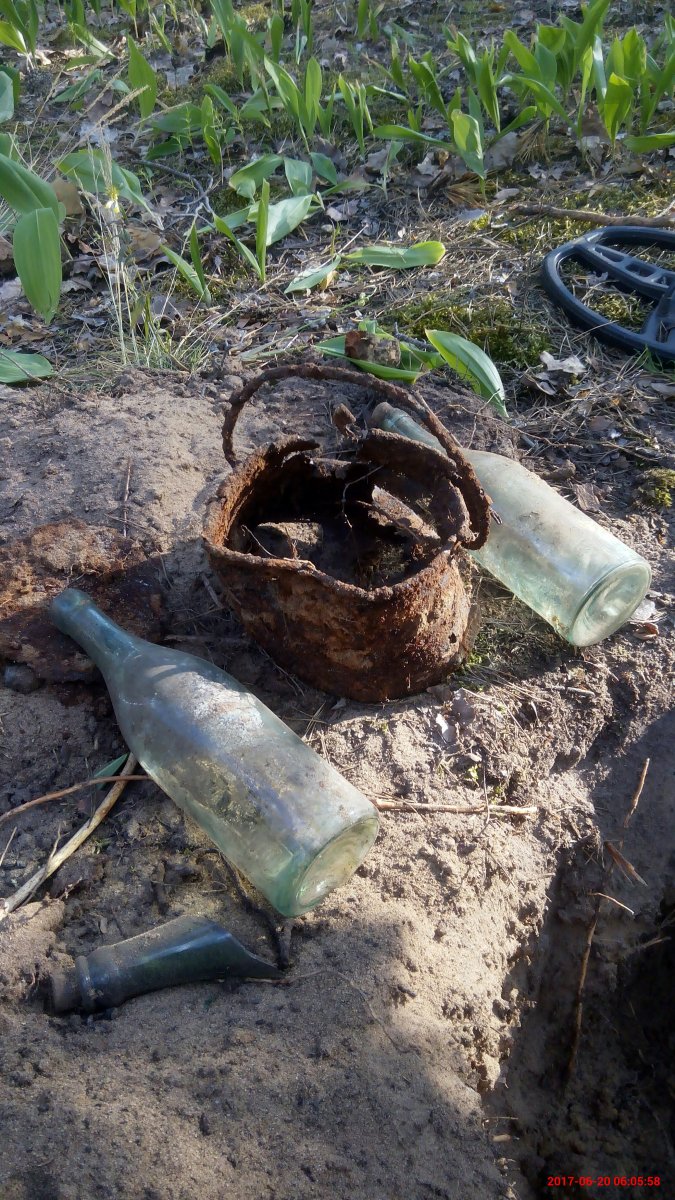 А у меня сегодня из интересного только полушка Николая первого. И бутылка вина прикопаная кем то Бутылку оставил Дедушке Хабару.)