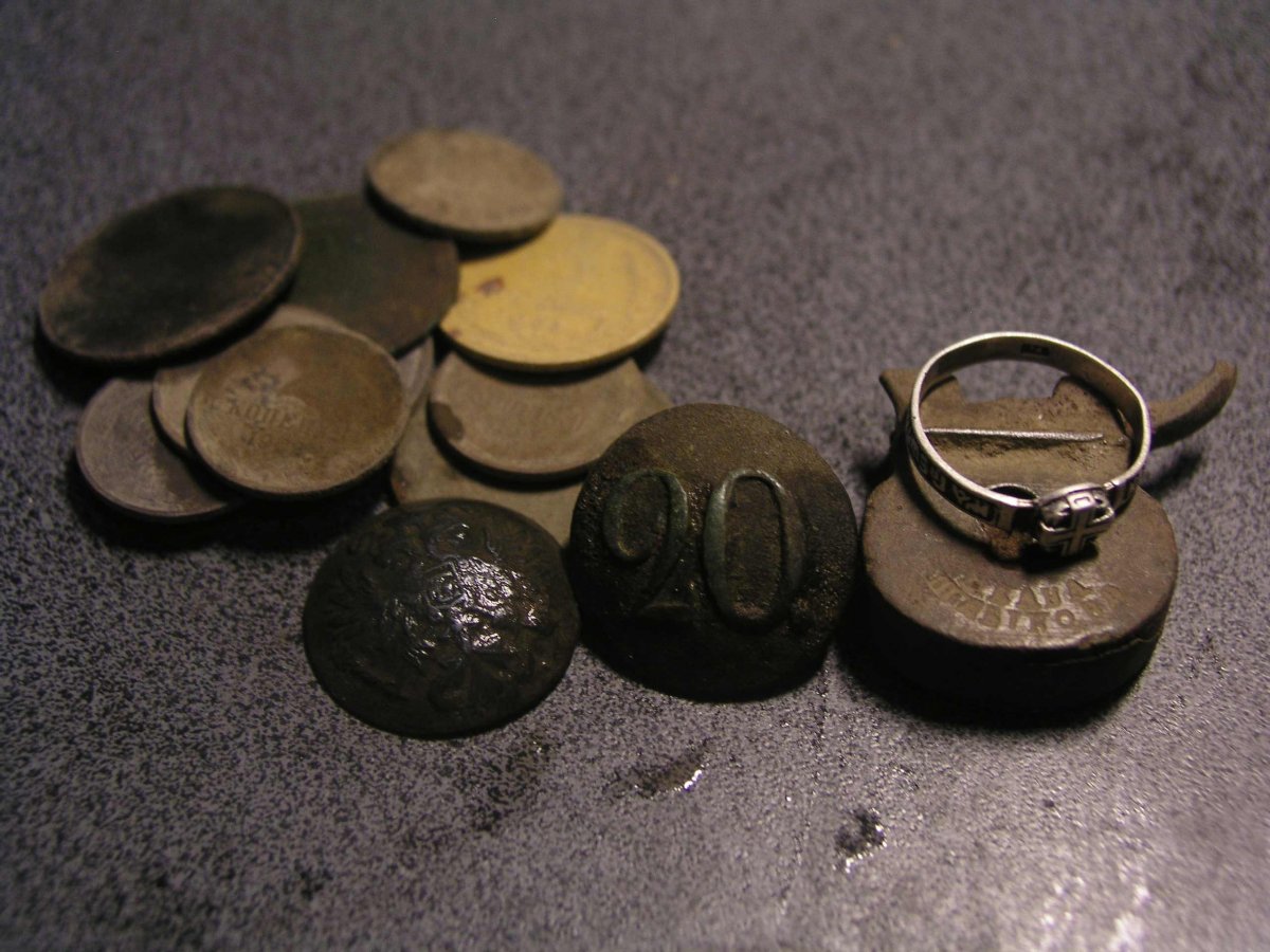 Мы в воскресение с Сашкой Teritex и с камрадом не с форума прокатились по старине* подальше от Киева. Что могу сказать, камрады - перекопано всё и даже там,где казалось бы копать вообще нет смысла! Утрирую конечно, некопанных место ещё много, но по ощущениям в воскресение - перекопали всё). Помыкавшись поехали на старую разливайку и там встретили камрадов. которые её(разливайку) выносили в ноль Снимали слой за слоем землю до фундамента . При нас нашли царскую копейку . В общем впечатления от копа - Хороший день в хорошей компании.) По находкам пяток монет на троих, пуговицы царь, советы и немцы, колечко по КР и две непонятки - украшения.