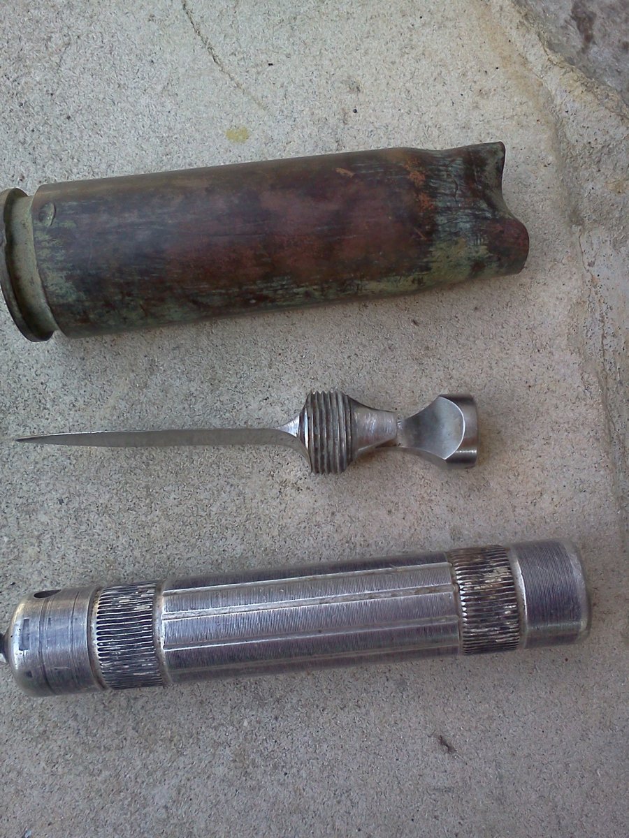 Решили и мы посмотреть новые места на линии Голубых озер. А за одно, сверить карту с действительностью. Благо от города не далеко, так, что собрались быстро. По дороге заехали в спец. магазин, где таких как мы, после проверки Soldbuch, обслуживают вне очереди и бесплатно. Набрали необходимых припасов и поправили здоровье. А оно, судя из планов, очень было нам нужно. Поэтому согласно приказа ГОСУДАРСТВЕННОГО КОМИТЕТА ОБОРОНЫ № ГОКО-1227с от 11 мая 1942, все топливо было спрятано по дальше. Возле воды всегда хорошо, а если в тени, то еще лучше. И тут... Артиллеристы, Сталин дал приказ! Артиллеристы, зовет Отчизна нас! Оказалось, что сегодня праздник! День арты! И пошло... Чем дальше в лес, тем толще партизаны. Изрядно устав, решили подкрепиться, а работы - непочатый край.... После обеда, как всегда, пришла лень.... но когда поняли, что ОНИ возвращаются... Откуда взялось столько силы в руках! Так и прошли дни.. Спасибо дедушке за рюмки! День артиллерии удался! Очень порадовала латунная гильза от МГ (у меня такой не было) , с шикарной курочкой на донце, да ножичек тоже, так, ни чего... Вот так, мы и провели выходные!