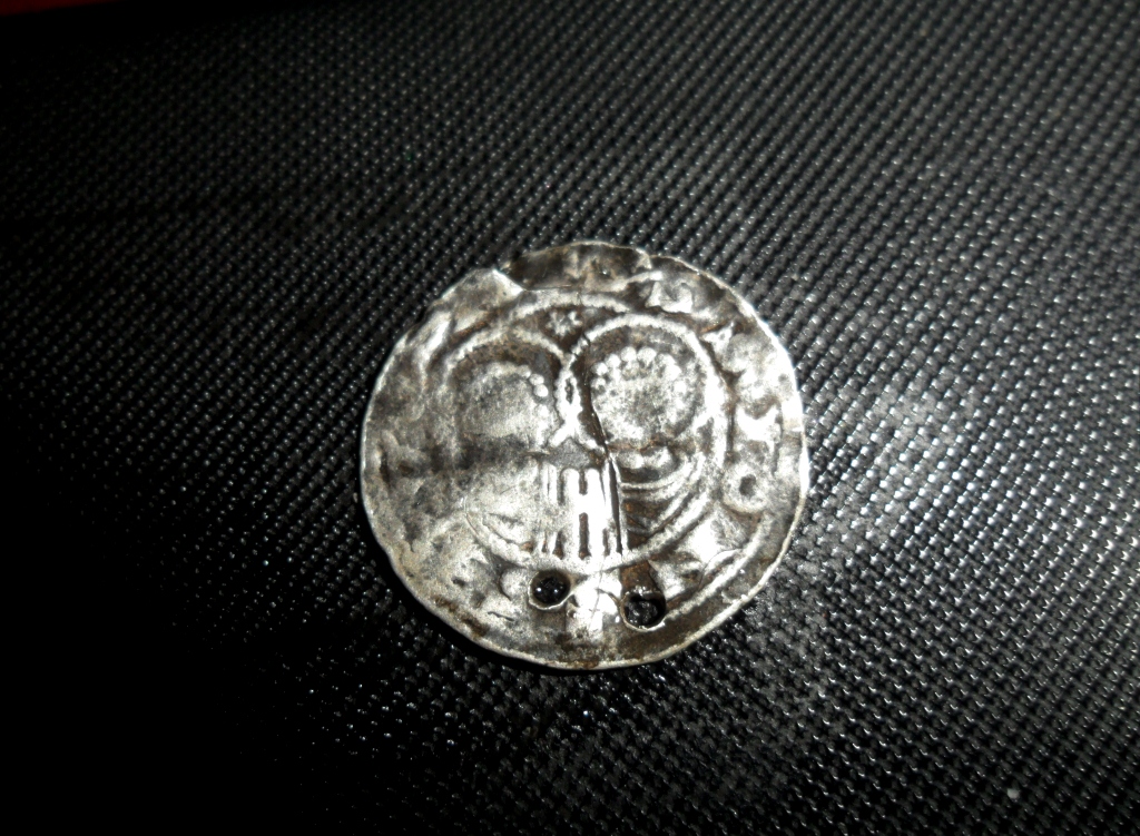Опознали монетку. Денарий Генриха IV (1056-1106 гг.). Хоть и не сребренник, но говорят, что очень редкая.