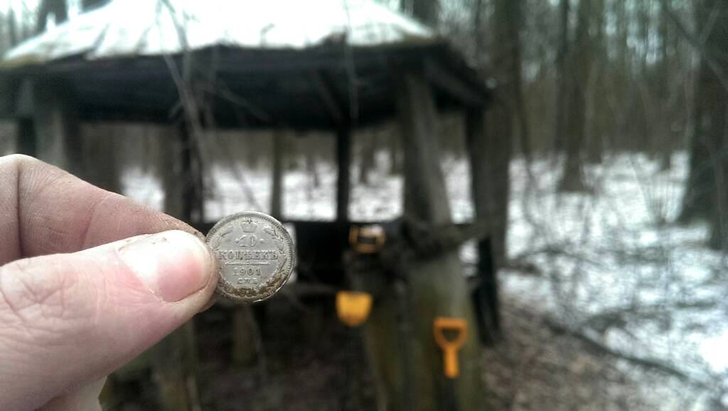 Сегодня в лесу копалось в целом неплохо, за исключением дорог, которые промёрзли и превратились в цемент. В итоге - полушка 1757 г, 2 коп 1897 и 2 коп 1967.