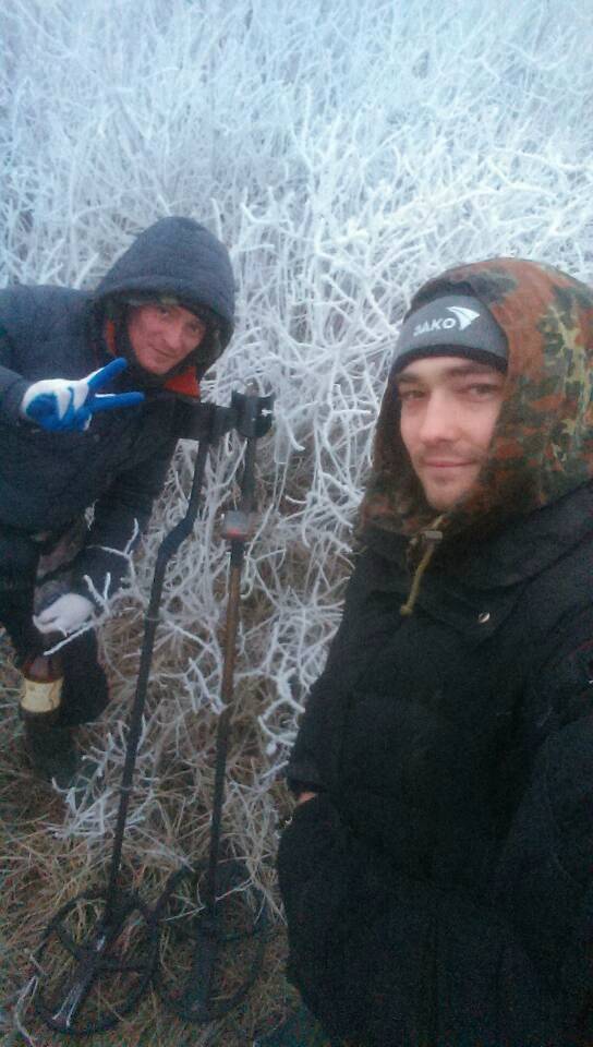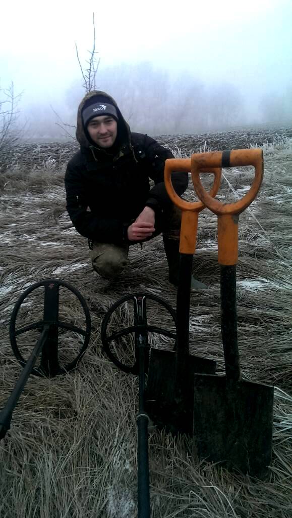 Вчера прокатились с камрадом на одно место, по средневековью. Где-то до обеда, на перепашке копать было практически невозможно ). Находишь сигнал, садишься и выдалбываешь его по пол часа ). Напарник с меня на копе ржал пол дня ). Ну такая картина... Камрад находит более-менее вменяемый сигнал, начинает его долбать, применяя при этом все возможные нетрадиционные фразеологизмы французского лексикона, с периодическим нервным бросанием лопаты об землю ). Не ну обидно внатуре, сигнал есть, а как его извлечь из под асфальта? ). Зимой, когда будет -10 -20, надо будет кирколом купить на барахолке, мы же не из тех, которые сдаются. На крайняк можно с собой на кравчучке кипяток возить в бочке и землю поливать ). Шучу конечно, просто после вчерашнего копа осталась масса эмоций ). К обеду каким то чудом земля немного подтаяла и стало немного легче долбаться в черноземе. Сначала полезли солиды. Первого я по традиции перерубил лопатой ). Потому что фискарь по утру применялся в качестве топора, для разрубывания оледеневших грудок почвы ). Извращенцы. Я понимаю. Ну а что делать, когда хочется найти клад и нравится сам процесс поиска, несмотря ни на что ). Таскать за собой зимой еще и паяльник с газовой горелкой у меня нет никакого желания ). На этом копе я выкопал свою первую в жизни чешуйку... Малюсенькую такую...Как было приятно в тот момент, эхх! ). Потом вылезла фибула, прямо возле трассы. Трактор перевернул грунт нехило, все находки в основном были сверху, средневековое кольцо вообще просто валялось, как-будто его вчера потеряли ). На черные и невнятные сигналы сил не тратили, потому что их к обеду уже вообще просто небыло, копали на "автопилоте". Несмотря на все баталии, день пролетел за один миг и добавил в память массу незабываемых впечатлений. Ну, вообщем, как-то так... Всем желаю хорошего настроения, приятных находок и острых лопат!