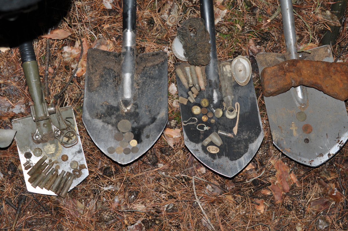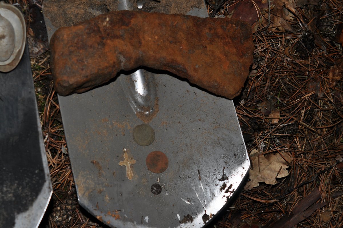 В районе Протасова я бы не рискнул залезть в такую "пещеру" А в районе Букрина - с удовольствием Вот как выглядит запечатанная "пещера": А это - совсем рядом, пустая: В субботу снова ездили копать с ребятами с этого форума. Порулили по моим местам. Так как поля ещё не готовы к нашему приезду, повёз их в лес, где когда то были неплохие находки. Вот это называется - связались с Растаархеологом За пару лет, что я там не был, находки чуточку подросли... Офигенное местечко. Мне нравится. Нагулялись, накопались, восстановились... Результат: Моя лопата: Ништяки-пауки...