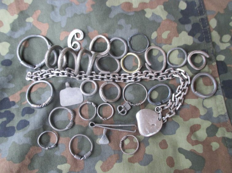 На фото медь чистая медь, в данном случае провода от трамвая. Я имел ввиду цветной метал (и по возможности черный), поясок к гнутой гильзе, там жаканчик, такой нежданчик и еще жаканчик и поясок - в приемку и на вырученные деньги покупай что не выкопал на ауках Родины или из экипировки что то или холодильник забей продуктами. "Прошу прощения, а что это на лопате на первом фото, круглое!?" Старинное женское серебряное украшение. С ув.