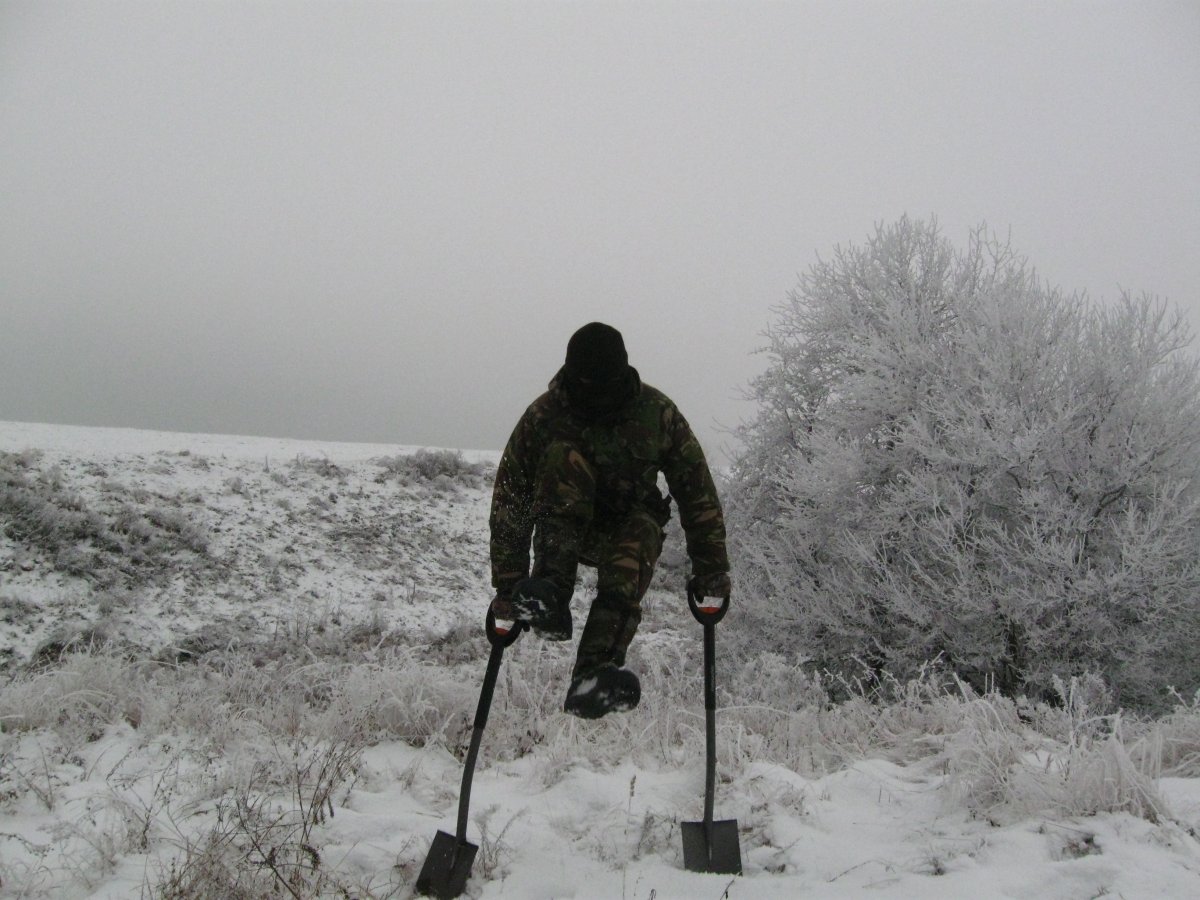Всем привет. Спешу проинформировать общественность о состоянии грунта в песочном лесу, в общем, в окопах можно копать, но брустверы замерзшые вообще, как и некоторые места на ровной местности. Получил от земляного деда куском льда в лоб за не соблюдение техники безопасности на копе, долбал яму, а оно все не долбалось, подложыл лопату под замерзшый кусок земли в надежде оторвать его, ударил по ней с ноги в надежде на успех, ну и вот. Так что берегите себя.