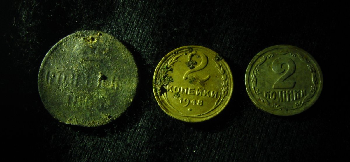 Вообшем. Пуща ещё избирательно, не зависимо от высоты. По песку с компостом ,как пух, где сложнее грунт ,то ещё корка. Иногда не пробиваемая. На двоих пару какаликов , интересный ножик на бруствера попался , но увы рассыпался. Окопы на Голубых озерах.