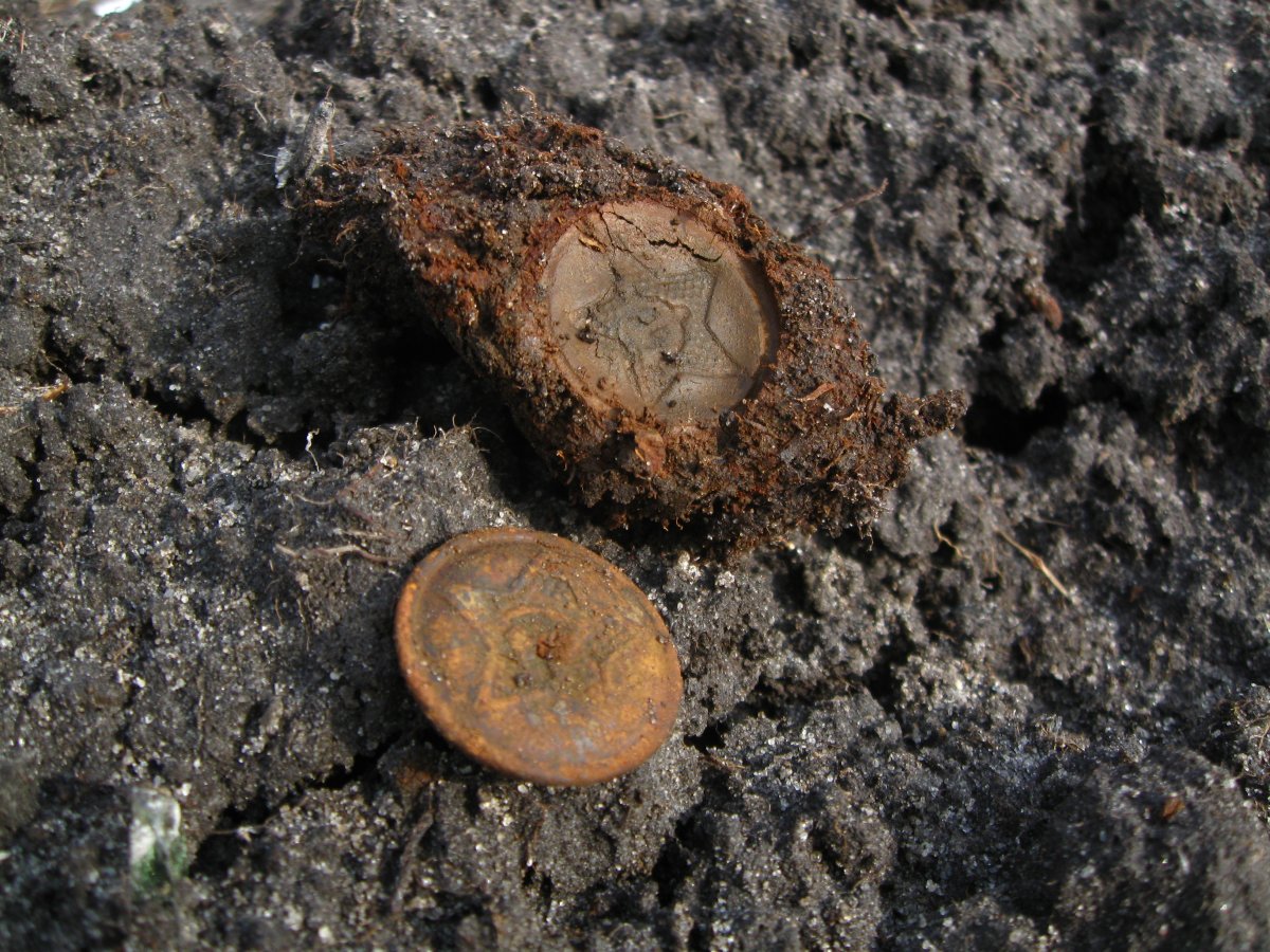 Спасибо. Понял, что необычная, сразу когда выкопал. Такой у меня ещё нет. Даже и мысли такой не было. Кстати, пацаны там дёрнули пуговицу номер 17, Франция (но фото плохо видно). Там столько ещё цветных сигналов в земле осталось, шо ховайся. Огромный луг, не копанный ВООБЩЕ!!! Это мы пока что обрабатываем самое "ничейное" место. Бо понабегают скоро желающие Там ещё есть кое-какие зацепки, поселяне ждут нас на самых вкусных огородах (уже оговорено и "оплачено"), на противоположном берегу ручья, где керамики КР на два-три порядка больше. Ям, естественно, там в помине не было и не будет, до нашего прихода... Через неделю-две займусь этой точкой по-взрослому.
