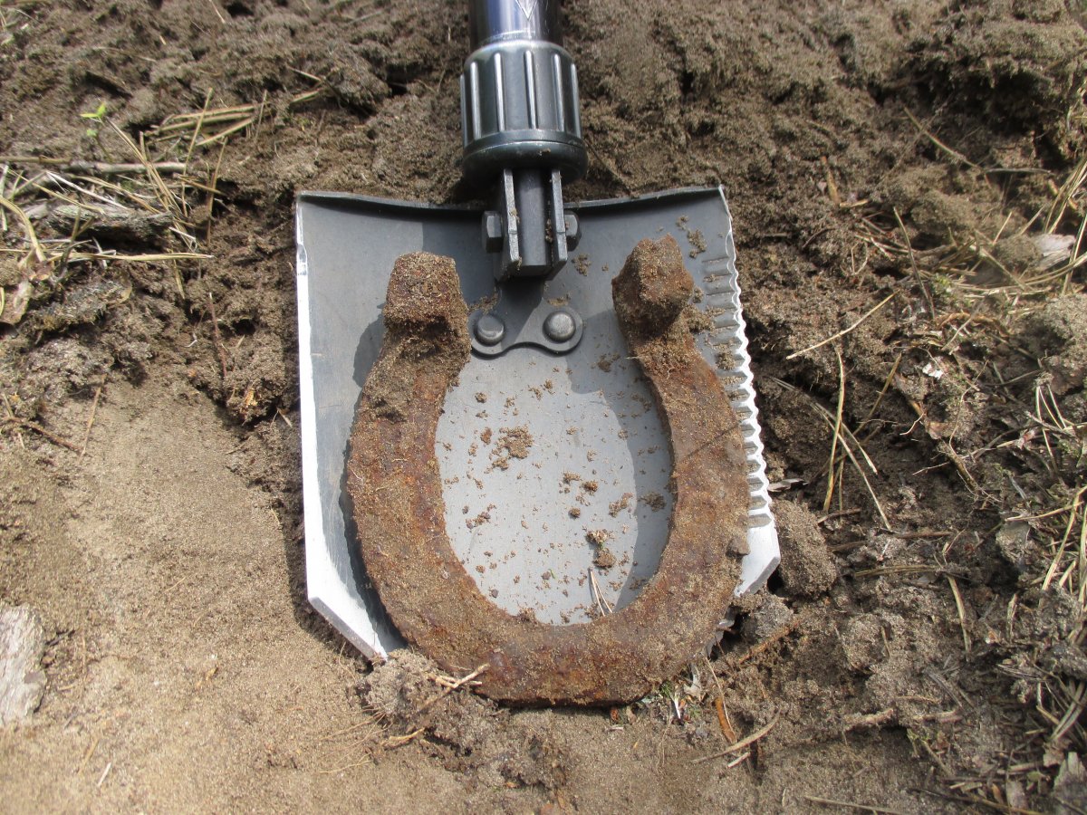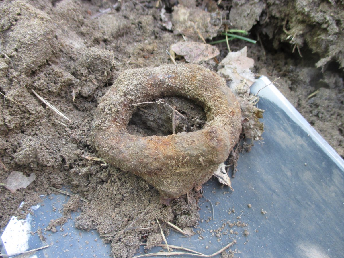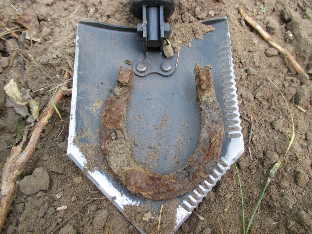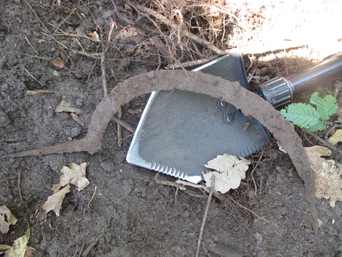 Доброго вечера всем! Ходил сегодня опять в Пущу. У меня, как всегда без приключений не бывает. Был подло укушен со спины , в руку шершнем. Оказалось ,задумался и не заметил их гнездо. Набросились на меня как те собаки. Убегая от них впилился лбом в дерево. Результат - рука (кисть опухла, что перчатка не налазила), и на лбу фонарь. Дедушка, видимо, пытаясь как то компенсировать мне потери ,подарил медаль и горсть советов. И часы) И наткнулся на сброс гвоздей* .(прикопал обратно) Копал их, что бы посмотреть , что под ними. Просто рассказывали случай, что под сбросом нашли полевую сумку, а в ней остатки документов , орден красной звезды и наган. В моём случае - ничего. В общем такой вот выход. Перед уходом попался ещё напёрсток медный. Всем удачных находок под катушку!