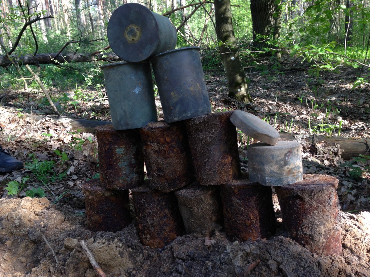 Добрый день. Заехал в Боярские леса походить по старым местам. В том числе и на позиции немецких гаубиц 10.5 см заглянул. Снова попалось немного гильз и коробочка для пламегасителя.