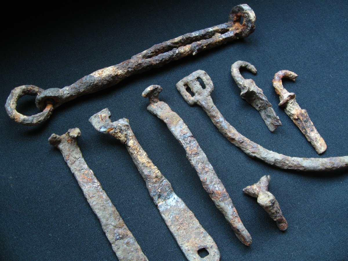 Всем привет. Вчера вечерком проехались на точку по Киевской Руси. В связи с практически полным отсутствием цветных сигналов, копал чернину, которую хотя бы слегка закидывало в цвет. Ну а шо делать. Вылезло копье и пика КР, подкова и пара полушек. И на том спасибо земляному деду Прошу знатоков, дабы не флудить в теме, подсказать мне в личку по предметам на последних трех фото. Буду благодарен. Всем хорошего дня и приятных находок!
