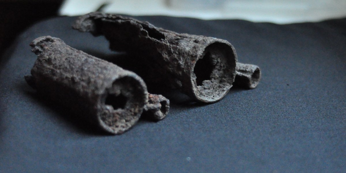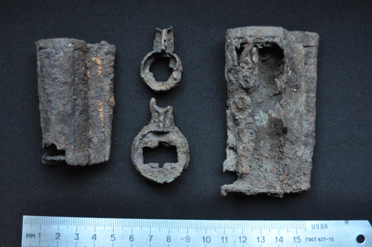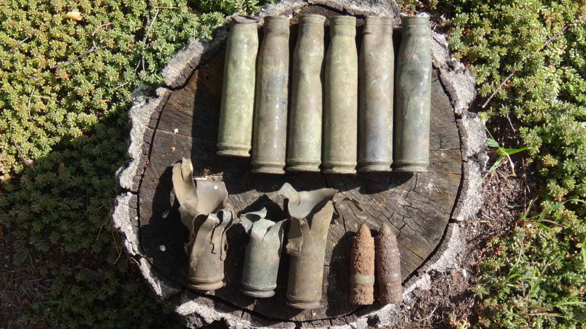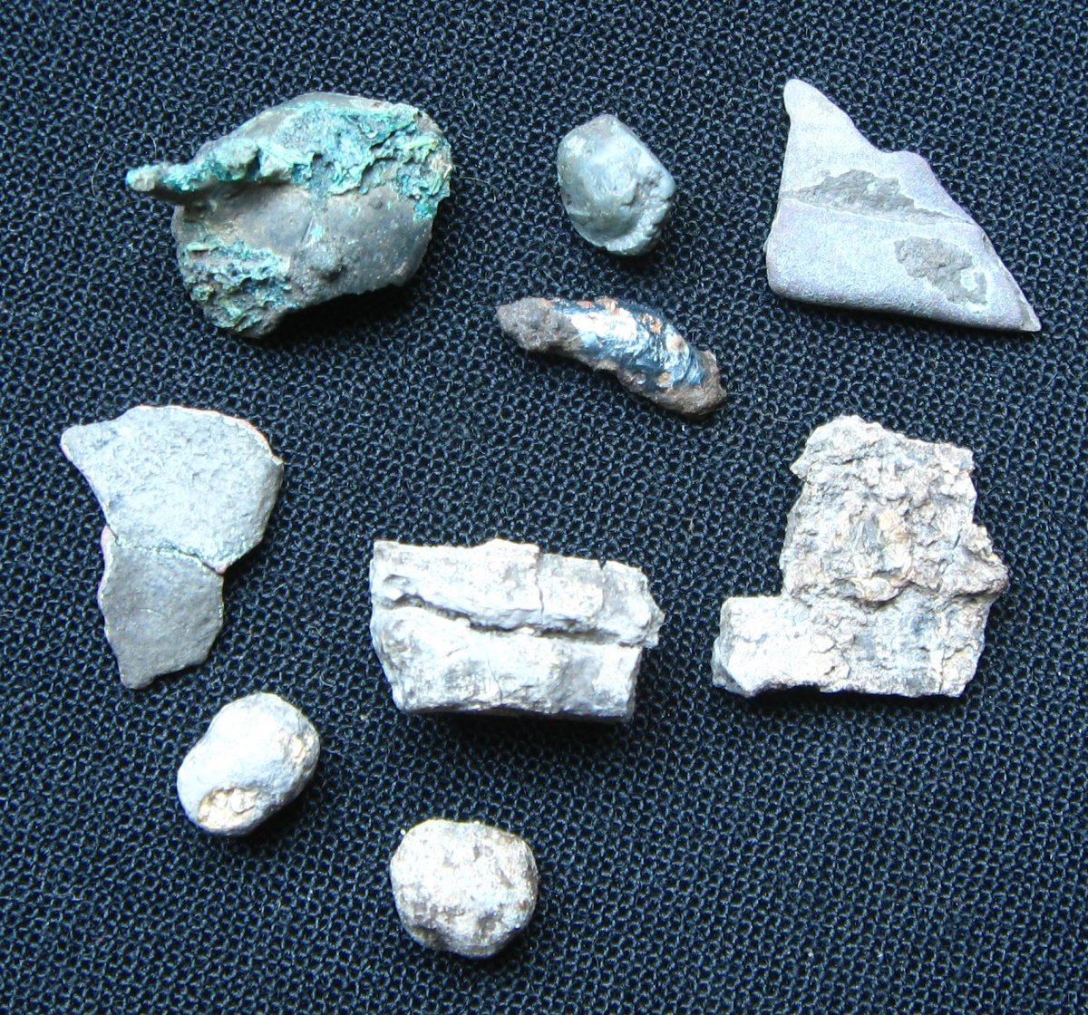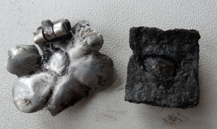 Много мелких обломков лежат пятнами вокруг 50.991490 30.380952. На 3х штыках звенело что-то большое черное, но его форма мне очень не понравилась, засыпал. Следы комрадов принципиально отсутствуют. На одной гильзе выбито 512 и 43. Вчера посмотрел ещё немного, всё то же самое, взял две вещи непонятные. Муравьи там лютые.