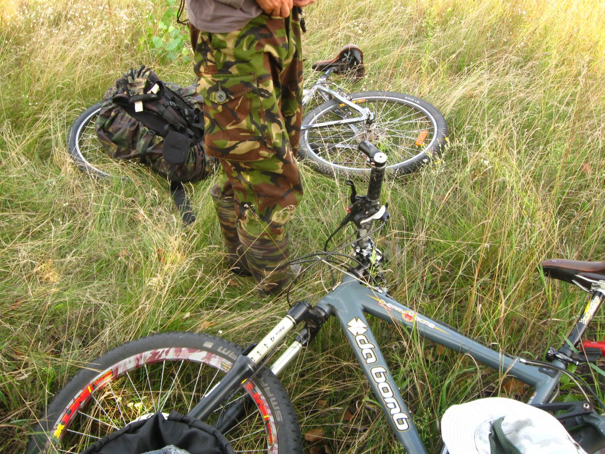 Воскресенье, 26.08.2018 г., где то на севере Киевской области. Проверка поступившей информации про наличие следов обитания древних культур, или говоря короче: Чернобыль-Тур: Выбор у нас невелик - или медленно едем, но подъезжаем прямо на место, или едем быстро, а там дальше - ножками. Второй вариант нам тоже подходит: Едем... Идём... На измене... Самое необходимое: А что у нас там с радиационным фоном?: Ойц!!! Плохо вижу Что то с дозиметром не то... Странно... Наверное, накину ка я на всякий случай ветровочку: Так поспокойней будет Результат за выезд на двоих: Погуляли прикольно, разведали пару новых мест, посмотрели на исчезающие сёла, поели настоящего Полесского борща и айда в Киев, до хаты... Видел там керамику Бронзового века повсюду: Силициум_о_два местами: И достаточно много керамики Киевской Руси: Всё в незакопаных ямах и ямищах, даже похуже чем у нас будет Но я свой крестик Киевской Руси всё таки "назвонил": Монетки подельника: Вернёмся туда как-нибудь полюбэ...