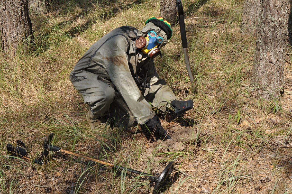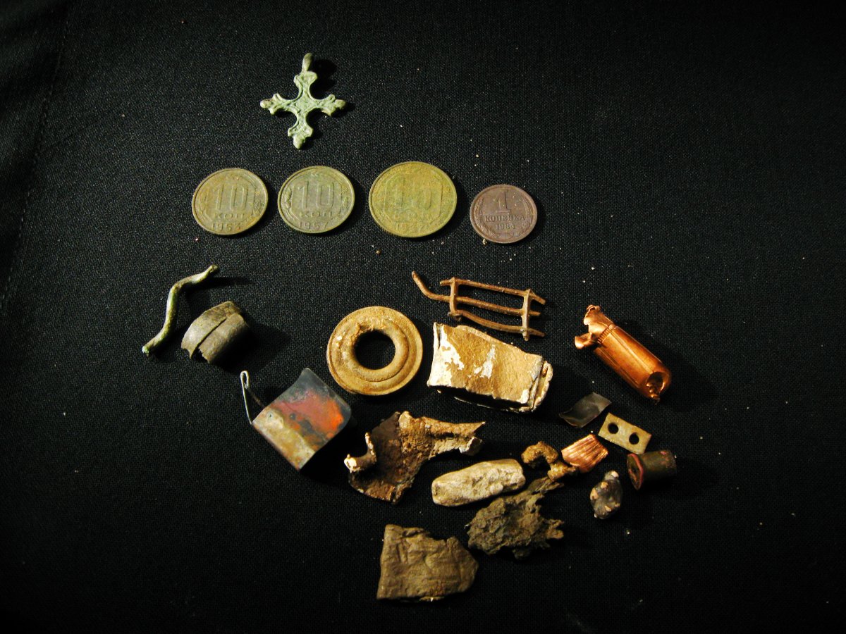 Сегодня после обеда прокатились в лес за Погребами. По находкам ничего интерестного, гильзачи, пули, ходячка и три совета. Удивило другое. Прямо на лесной дороге на перекрестке кто-то поставил курицу без головы, бутылку водки и какие-то веревки завязанные на лапах. Ушел вправо. А там та же картина, только еще и с воткнутыми в тело иголками. При выходе из леса уловил сигнал. С двух штыков выкапываем сумку, открываем, внутри целофановый пакет с еще одной полусгнившей курицей. Жуть. Шо цэ в лиси такэ робыться? Не хочу больше в этот лес. Стремно