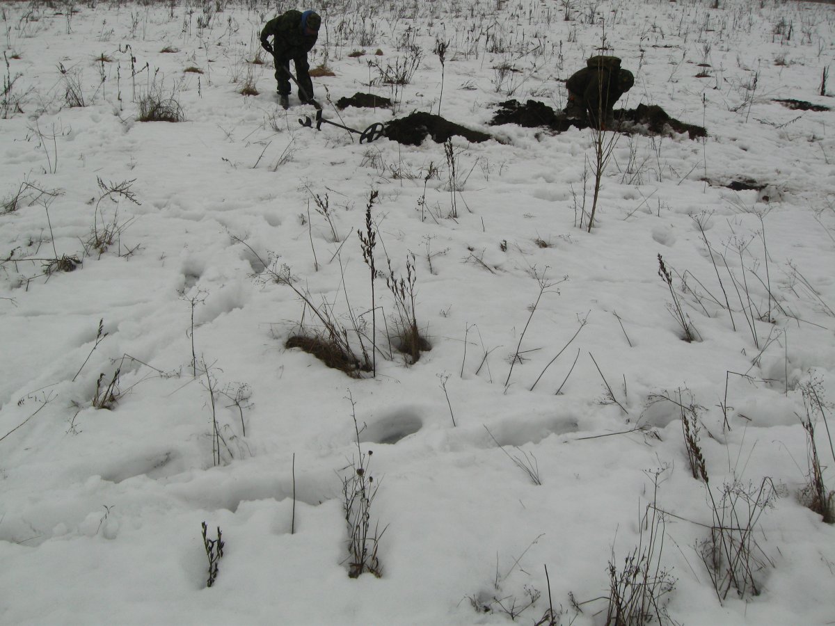 Приветствую ! Глянул на картинки выше и решил и себе проверить ,что камрады оставили в Пуще. Снега ещё хватает. Искали с товарищем чистые места. Получилось ,как то так. У камрада так же , свои сам покажет ,если захочет. Всем удачи ! P.S. Гильзы и пробки не фотал )