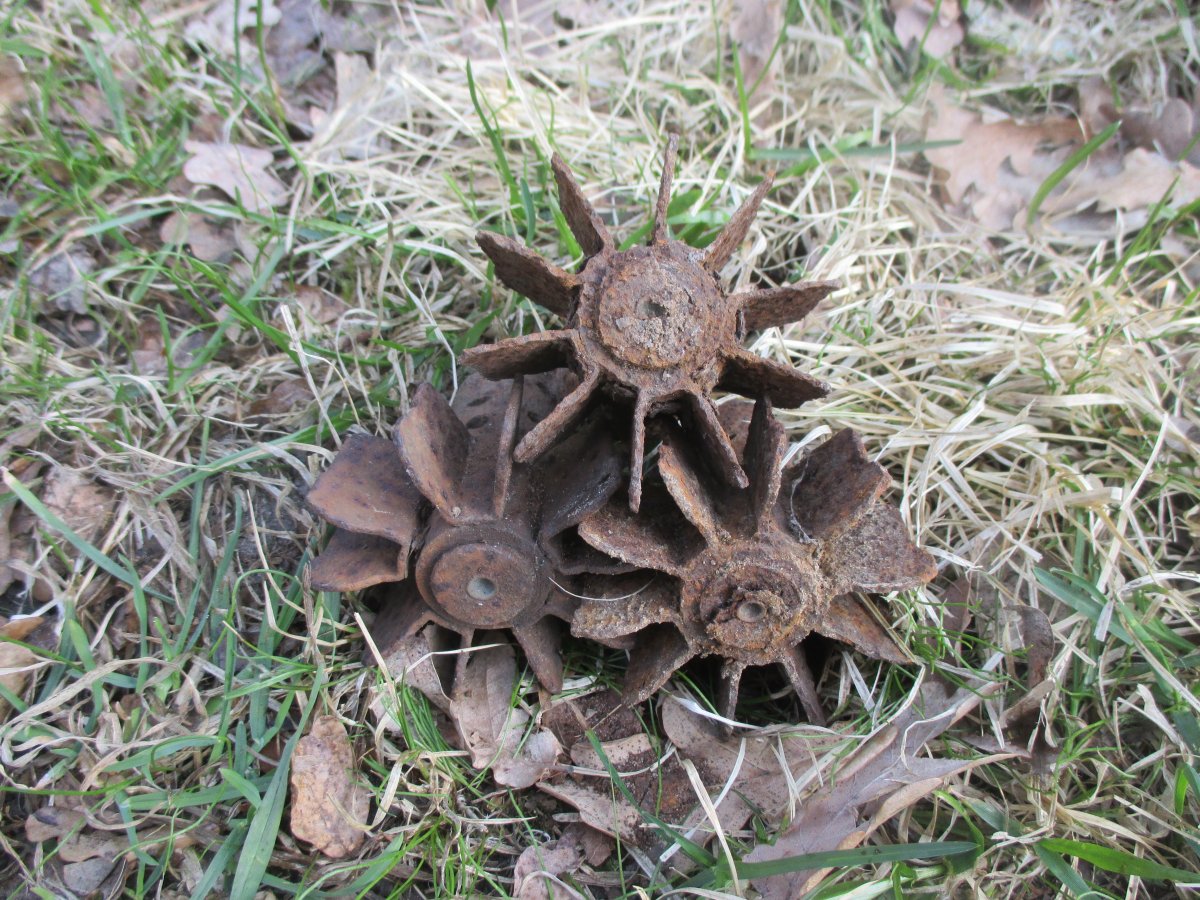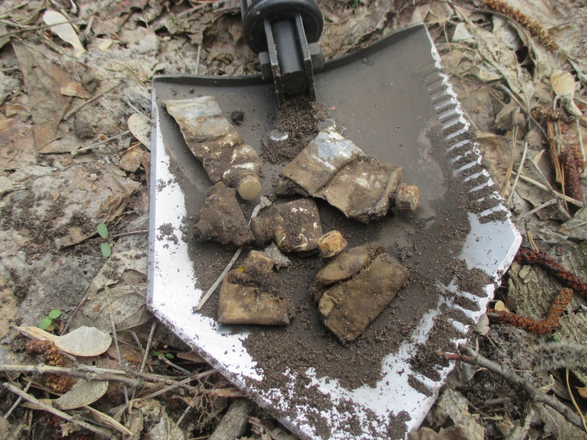 осколки от взрываков, гансовские потроны-потеряшки, редкий настрел и современные жаканы (охотничье хозяйство там)