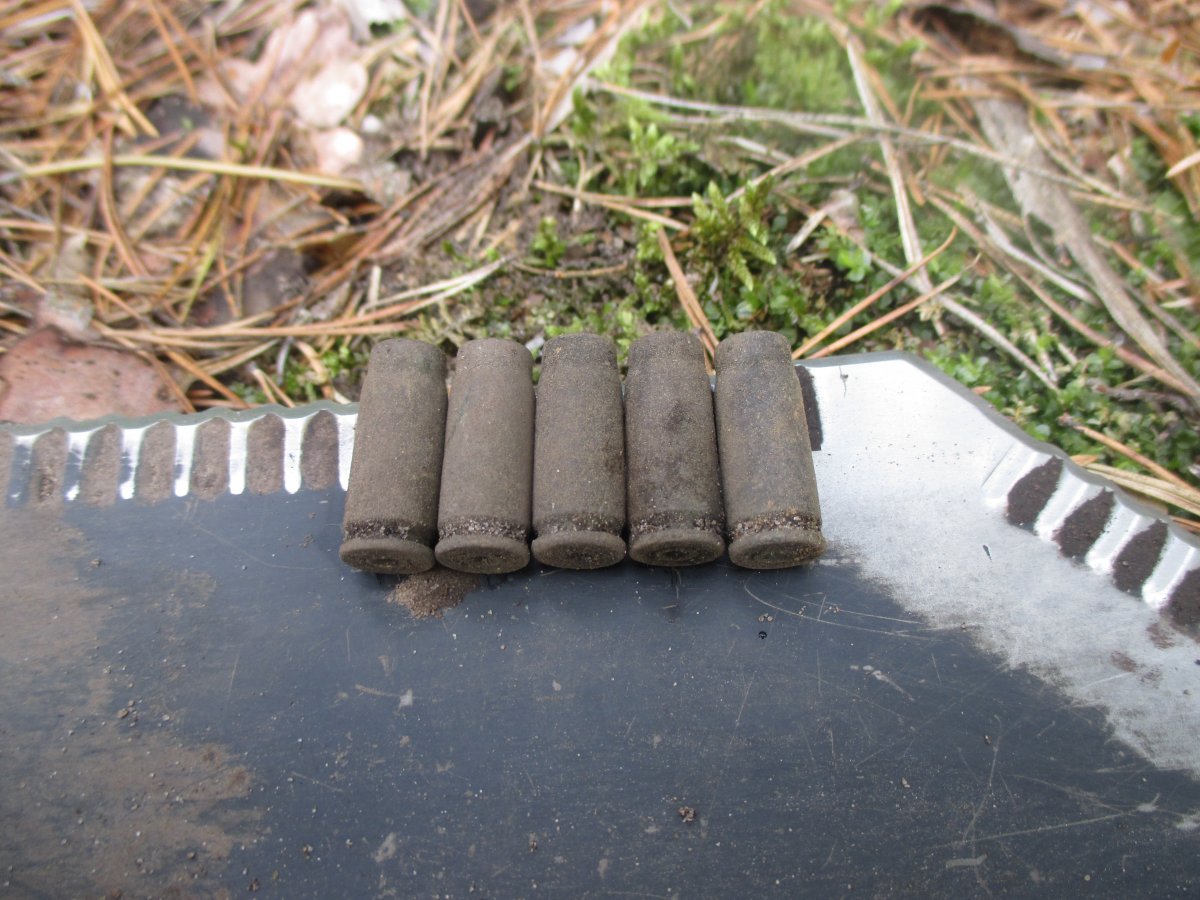 Добрый вечер. Выбрались и мы сегодня с камрадом. Сначала часок шурфили уже разведанную царскую свалку. Выскочила одна чернильница Далее разведка по неизвестным вырубкам, полянкам..рядом с петличкой связиста залипший солид и царская пуга с номером 11. Так-же Ленд-Лиз'овские арт.предохранители и настрел 30-06, маузер. Результат Далее выскочили пара пустых Ф-ок Ну, и кака под конец((