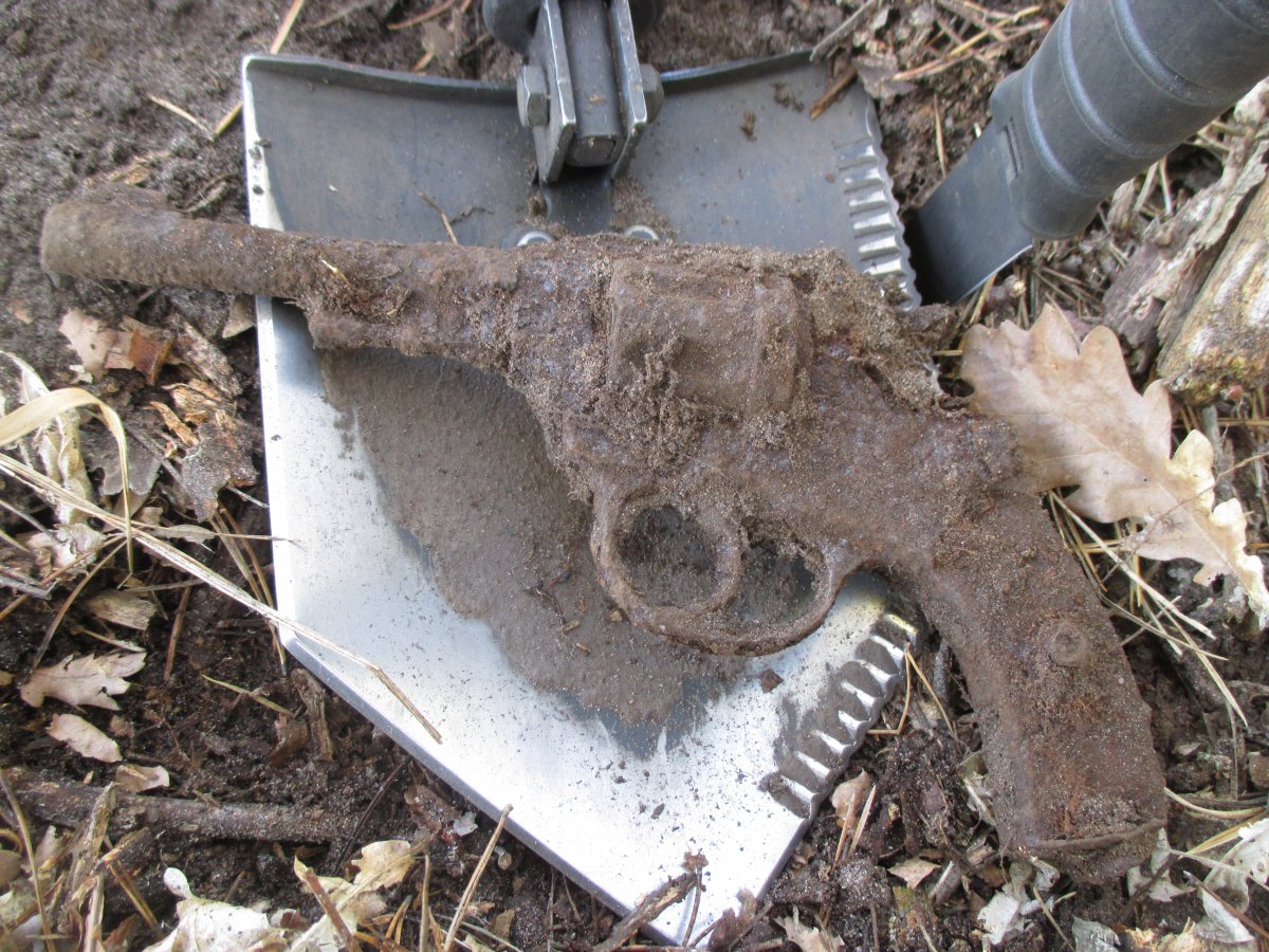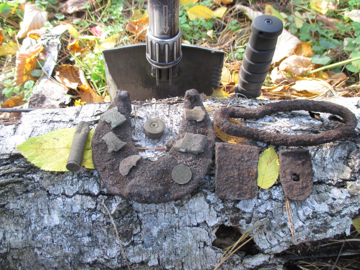 Доброго Всем времени. Разрешите отметиться в очередной раз . Я покопал вчера целых шесть часов и сегодня докапывал часика три, что бы успеть к семейному обеду - пришлось выезжать на коп с первыми петухами... Ну пару фото природы, настоящая осень уже - но потеплело. О месте, обычный лес где конечно копали и к тому же уже не одно десятилетие... Следы предшественников по всюду и в некоторых местах просто можно сломать ногу в не закопанной ямке - День начался как обычно, я прозвонил окрестности лесной высотки - порадовала подкова и кованные железки... Дальше на высотке звенел гильзач с поясками - Но два сигнала отличались от классики тех мест - первый - и второй - Оба были опасны и я не был готов к встречи с ними в этот выход, не было при себе нужного инвентаря ... То что компас времен ВОВ из земли (в отличии от моего 80-х годов прошлого века) может быть (вернее скорее всего) поопаснее многих ВОПов я знал конечно, все таки эколог по образованию . Ну и то что пистолет хоть и не выстрелит но без деактива в рюкзак ложить не стоит знал то же. Я уважаю 263 статью УК и никогда ее не нарушаю Вообщем закопал я их, место запомнил и пошел дальше гизы свои искать с интересными клеймами... Сегодня утром я был на той высотке с нужной снарягой - Компас меня удивил, хоть я видел "авиационные часы" на блошке с излучением на порядок больше, все же я думал показания будут меньше - но Есть личная просьба, использование радиоактивных элементов в приборостроении подробно описано специалистами в литературе - все это есть в свободном доступе в инете, давайте пока пан Вольф на больничном - флудить меньше... Компас закопал где то на полметра. Деактив пистоля провел на месте, дальше помою и законсервирую и в рамочку над своим письменным столом Для приличия копнул еще пару часов - классика Но лес все же подарил мне сегодня артефакт, редкая находка, я находил всего три раза - это четвертый, а в лесах я бываю часто - Как то так вышло... В понедельник там продолжу искать свое счастье... Теперь трошки воды... Коллеги я Вас Всех достал своими отчетами, да и если честно мне уже надоело фоткать каждый свой выход... Устал я трошки от отчетиков - чего греха таить.. Я хотел закончить сезон итоговым отчетом, а в этих двух выходах в приципе было все - находки, природа и лес в котором я часто копаю... Пускай это и будет мой итоговый отчетик этого года... Я конечно с форума никуда не ухожу но отчетов думаю на этот год хватит... Буду смотреть Ваши. В принципе Все, Всем правильных сигналов. С ув.