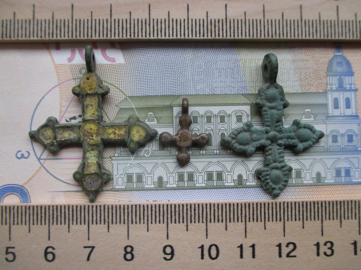 Симпатичные фрагментики фибул ЧК, фрагмент крестика киевского типа времен КР - выбитость заметна - Четкие находки - уже коллекционного уровня, и не давние в принципе - прошлого сезоне.... Смотрите, нам Всем стало понятно пару дней назад что в эту тему вполне можно и нужно вставлять не войну То есть наша ветка стала такой как и Все остальные - нравиться кому то или нет, но коль сейчас ТАК считает большинство что не война тут должна быть - значит будет, все таки на Райберте мнение большинства значит многое, администрация не против и это свершилось Сейчас было бы интересно посмотреть кто и что накопал по не войне в нашей области в этом году... Но именно накопал - Не для не кого не секрет что есть еще места на нашей Родине где древностей больше... В этом году сплавляясь по реке - я на берегу глазами собирал древний кремень... - Но не катит это - не наша область же Достаточно иметь совсем трошки бабла (рядовая древность стоит копейки) - зайти на два соседние форума, сделать пару ставок или на крайняк на слет подскочить и Опа - ну там уже от желания и финансовых возможностей - но есть ВСЕ копать не надо - за тебя выкопали - плати только Но это то же не катит конечно - Тема где копать именно в нашей области то есть в этой теме надо показывать что ты лично нашел в этом году в лесах или полях Киевской обл. - Сейчас чищу комп от ненужных фото этого (для меня уже прошедшего) сезона - спокойно покажу свои результаты - в принципе одни осколочки истории имеющие какую угодно ценность кроме материальной - но я и гильзы с удовольствием копаю, на копалось это - и на том спасибо . Продолжу в следующем посте - фото залью просто... И надеюсь посмотреть Ваши по теме....