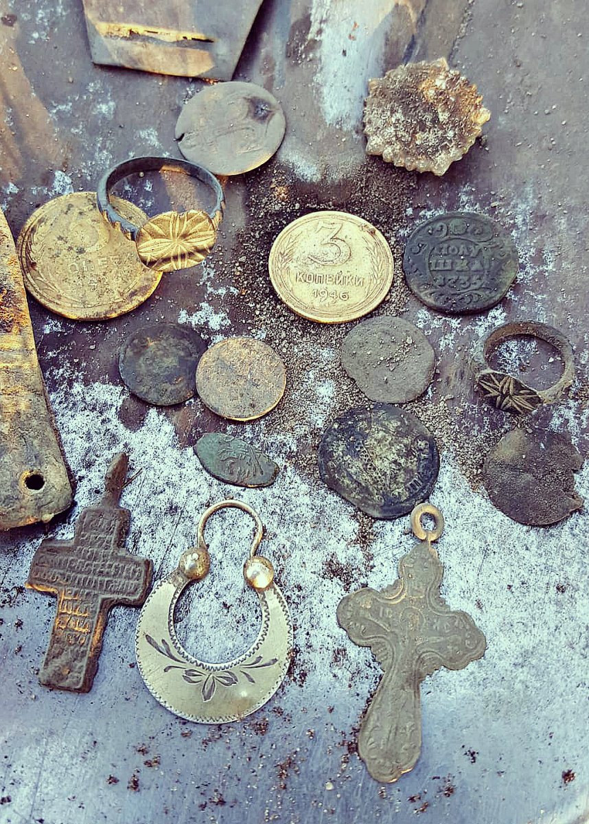 Шалом. Тотал 14 монет. 1 царек медный. 3 совета ранних (2 рамочника и трюндель), 6 советов поздних -рассыпуха и 4 ходячки - рассыпуха над расыпухой. Фото не прилагаю, бо качество не але. В принципе нормальный прибор на глубине до штыка, свое видит. А в пуще вешать руль не вижу смысла из-за мусора.