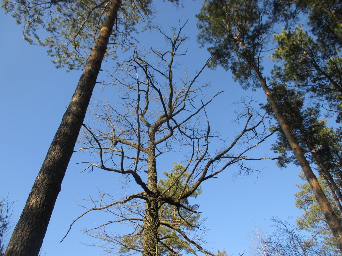 Голубое небо, достаточно сильный ветерок и падающие от его порывов то тут то там ветки -