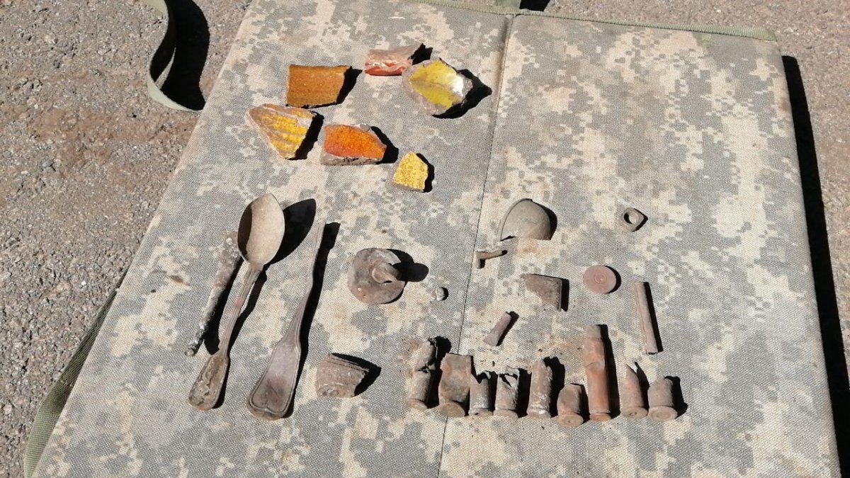 Дышал в тех землях свежим воздухом, правда глубоких ям не копал. Очень много гильз, полно ВОПов и чужих ям, поясков валом и проволки медной... Мне лично ничего интересного не попалось, так все рядовое (что не гильзач) - Но природа там красивая.... С ув.
