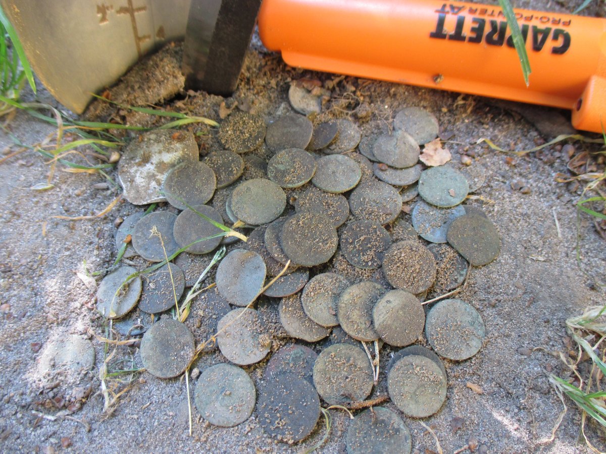 Доброго дня Сегодня поехал на разведку по распашкам.. Местами еще кукуруза с подсолнухами, местами стерня по колено.. Попал на распашку по хуторам, но опаздал на недельку.. 4 пуговки, разломанный колокольчик , горсть советов , из которых интересна только полукопейка..год пока не виден. Ну и заехал откопал , наконец, гусеницу которую ещё весной нашел. Вроде как от трактора ДТ 75., пойдет на металобрухт. На поле выдержал до полтретьего .. жарковато еще. Ехал домой мечтая о душе..а дома ни горячей ни холодной воды! Аварийщики до сих пор что то варят под домом ..вот такой коп сегодня вышел Всем удачи и хороших находок!