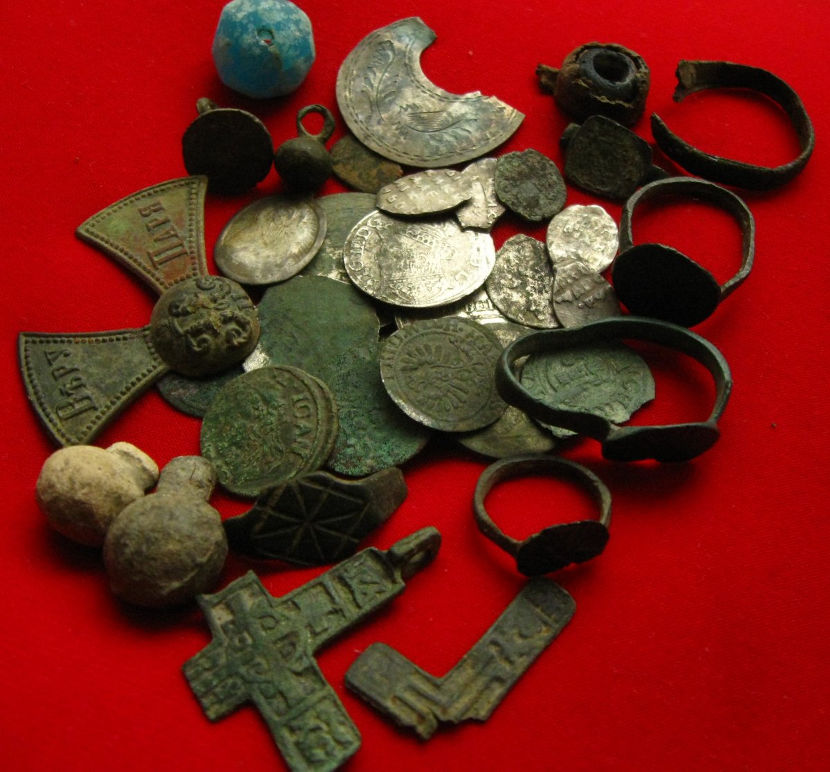 Четко подмечено! Я параною по-поводу вируса, и совсем не беспочвенно - мой кореш недавно переболел COVID-19, а на днях, у меня на работе всем сотрудникам сделали тест - это шок! Не будем об этом больше, лично со мной все ништяк! Так как собираются совсем незнакомые мне люди, и я не вкурсах у кого и что со здоровьем, то формат нашей встречи предлагаю сделать больше копательный, нежели вливательно-тыменяуважательный. Саперки не метаем в дерево, Жигули из песка не откапываем, жетоны не ищем. Этого никто не знает наперед. На точке, куда я приглашаю ПОЧТИ всех желающих, будет материал по-древностям, а сколько его будет? Зависит от всех нас... Там до сих пор лезут средневековые монеты, пару лет назад в тех краях было три домика по КР, я с подельниками их выпоторошил знатно, несколько лет уже голяк по Домонголу В радиусе этой точки что то по КР еще можно найти. А когда то, я ее срисовал первым, и успел выудить трошки материала: Единственный напряжный момент на "Точке №1" - это неадеквашка-фермер. Он запрещает нам там копать уже много лет. Причем, нельзя копать в любом раскладе - будь то вспашка, стерня или дисковка. Естественно, мы ложили на него и копаем, когда есть душевный порыв, но все же, как то не то. Можно или забить и копать толпой, что сделает невозможным сгон людей с поля, либо копать там ночью. Не знаю... "Точка №2" - это километры полей и наслоенка от Триполья и до царей. Но в два раза дальше. Это да. Имейте это в виду! Четко подмечено! Добавить просто нечего... Места хватит всем, находки будут. На следующей неделе разгружусь с работой и съезжу посмотрю, что там с вспашкой. На той локации три поля, которые таят в себе находки всех времен. Если все вспашут - мы на коне...