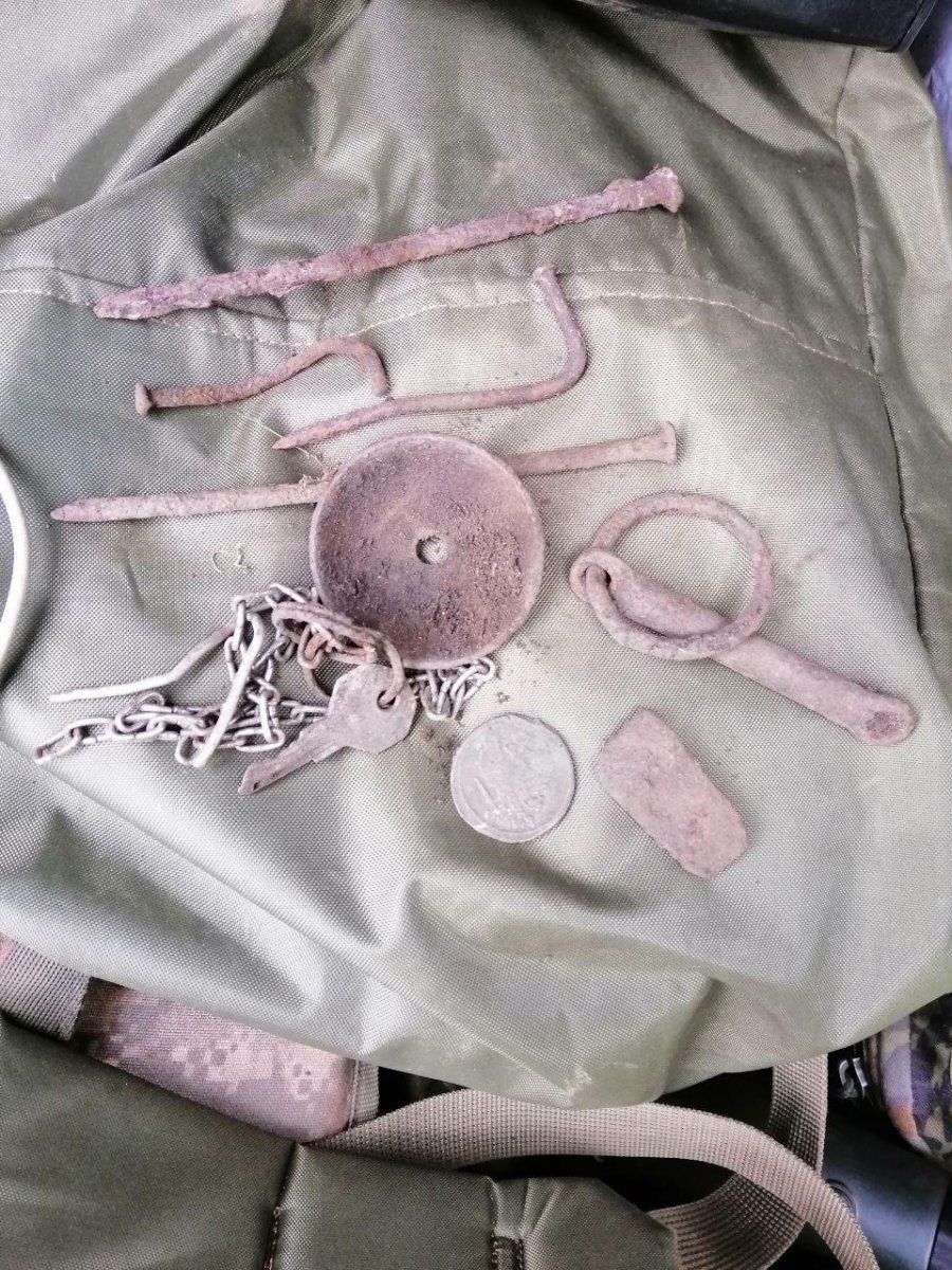 Мой второй в жизни коп. Так хотел найти монеты, хотя бы советов. И вот моя мечта сбылась, но не так как я хотел . Судя по месту где я был - выронили такие же копатели как я - пришел на разграбленный домик лесника. Viber_image_2020-10-11_11-26-06 от Andrey Nemo опубликован 11 окт 2020 в 11:27 на фото то ли труба, то ли дуло, не понятно, нашел ниже в овраге. Шарики какие-то, может подшипник, может дробь. Но второй шарик великоват. Вроде пуговица дырявая (хорошо хоть не ложка ). И какой то странный отрезок из метала, с рифленым узором - на фото лежит на оплавившемся куске металла (вроде алюминий). В общем ничо не понятно, но ТАААК интересно .