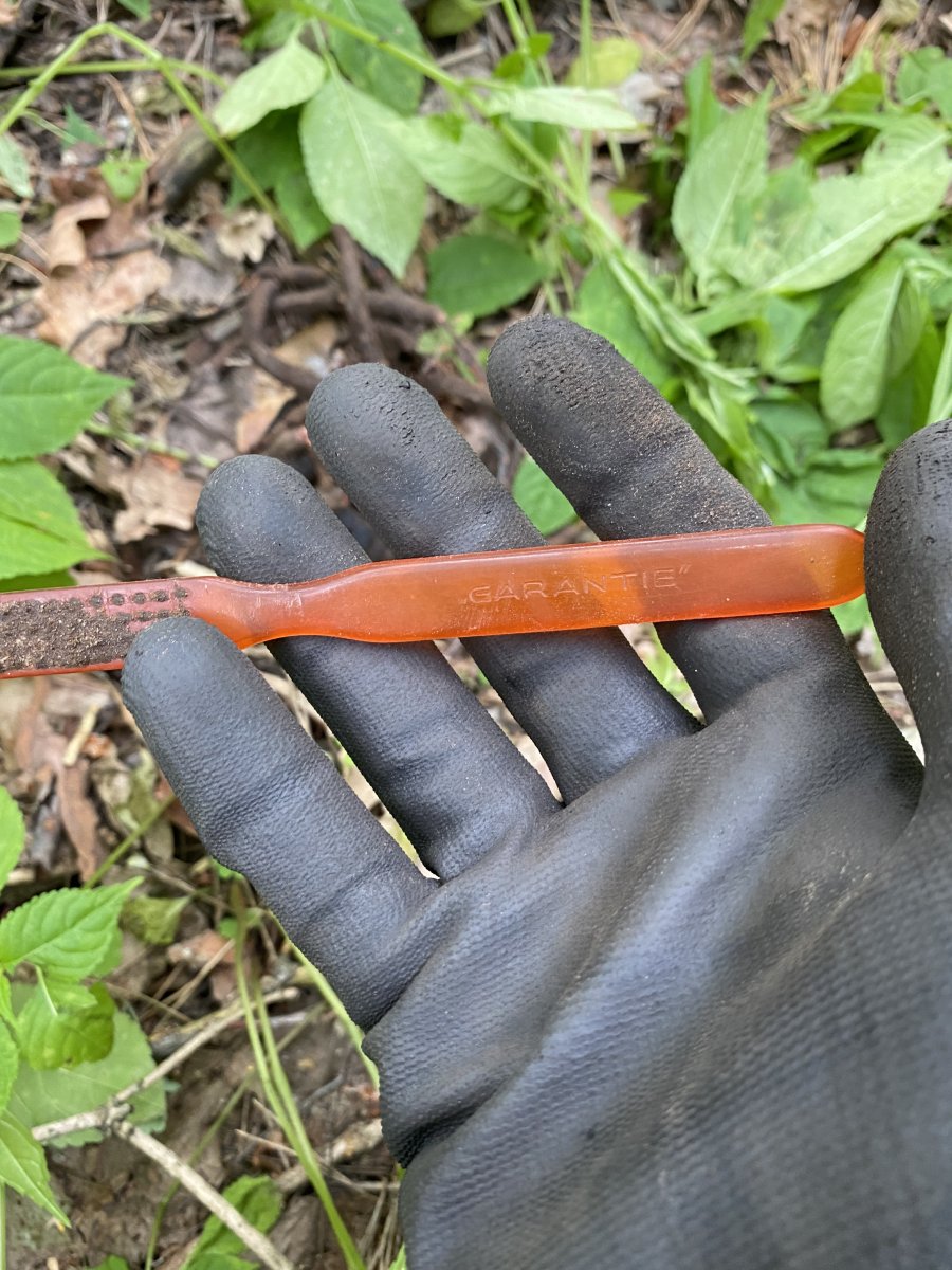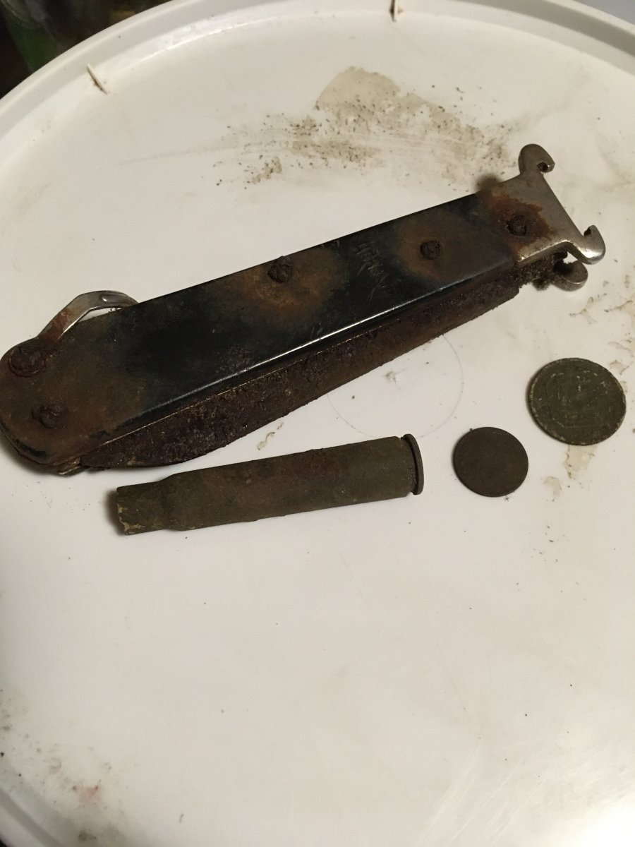 Навіть монетки жодної не було. Але отой великий поясок змусив копати з півметра. А під ним важка залізяка ще була.