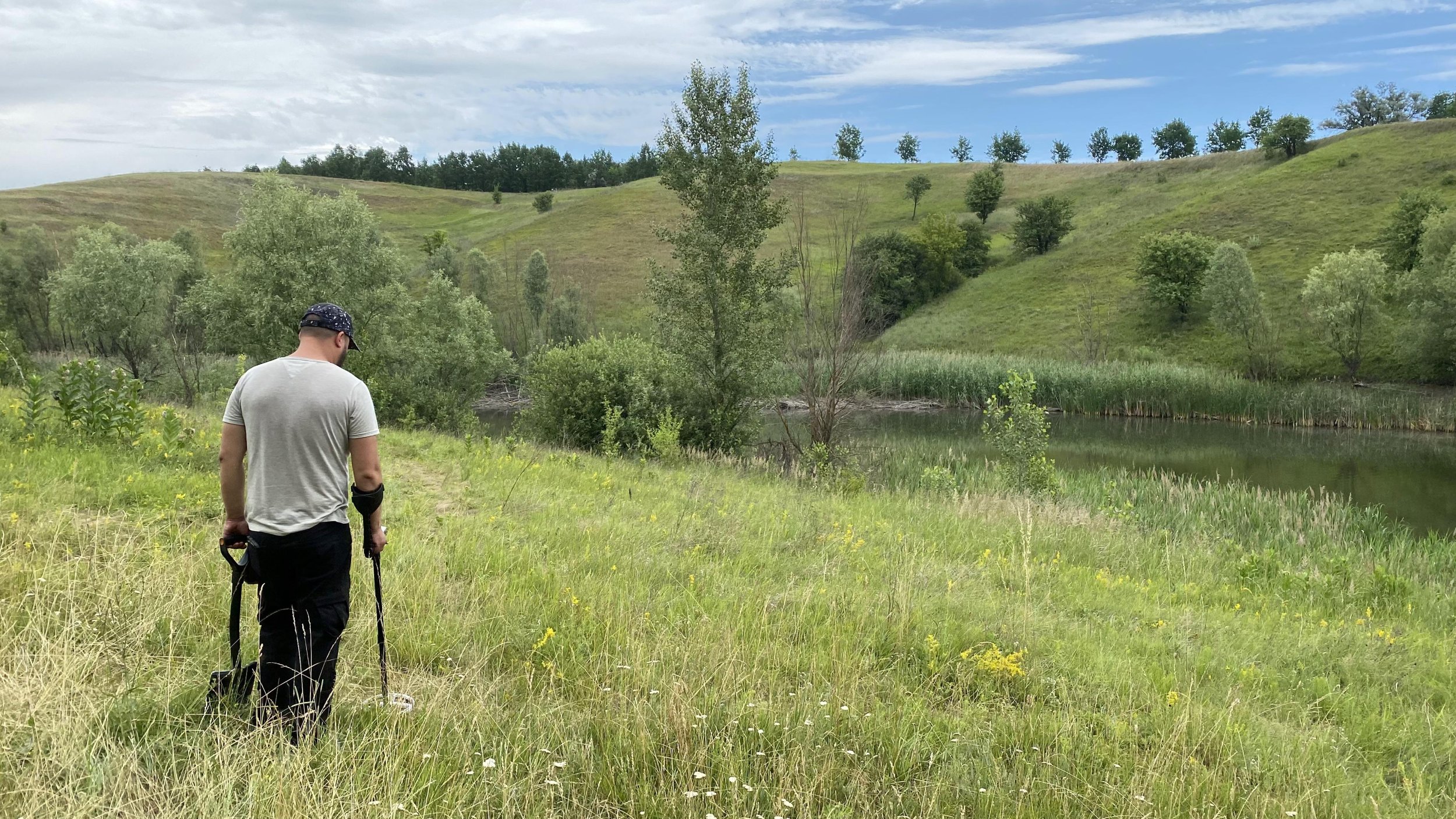 Вспаханных полей ещё там нет, а берега -луга.... там травы по колено. Интересно как там найти керамику...