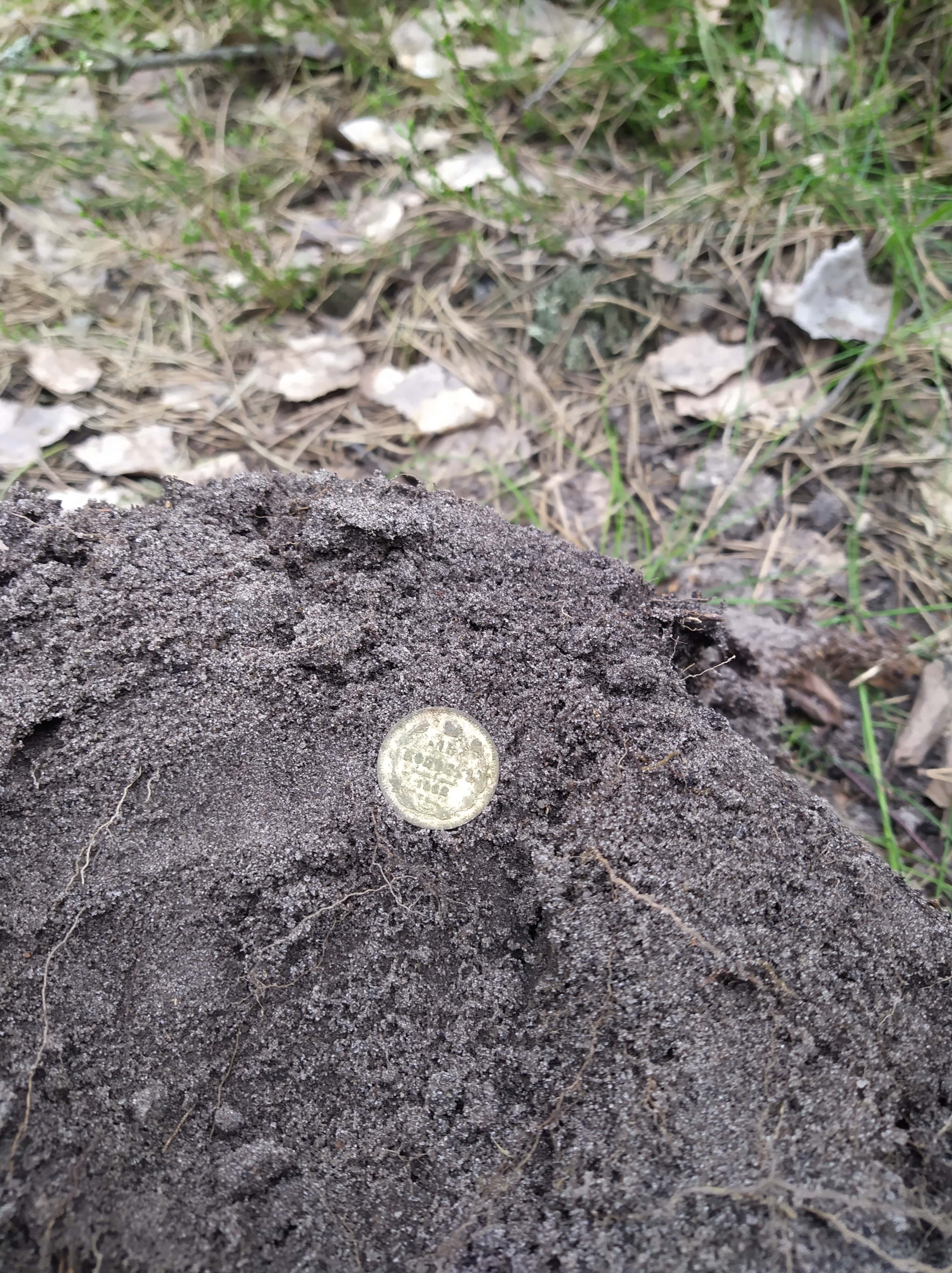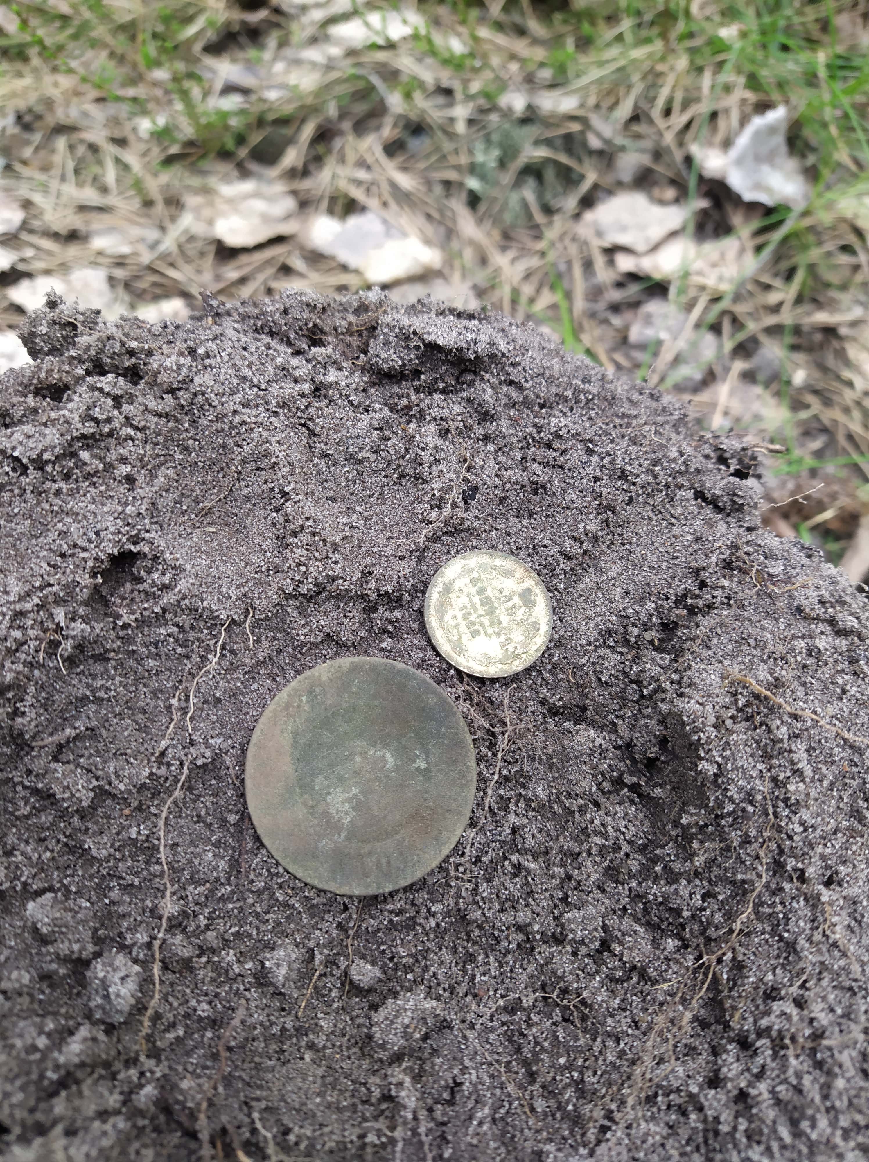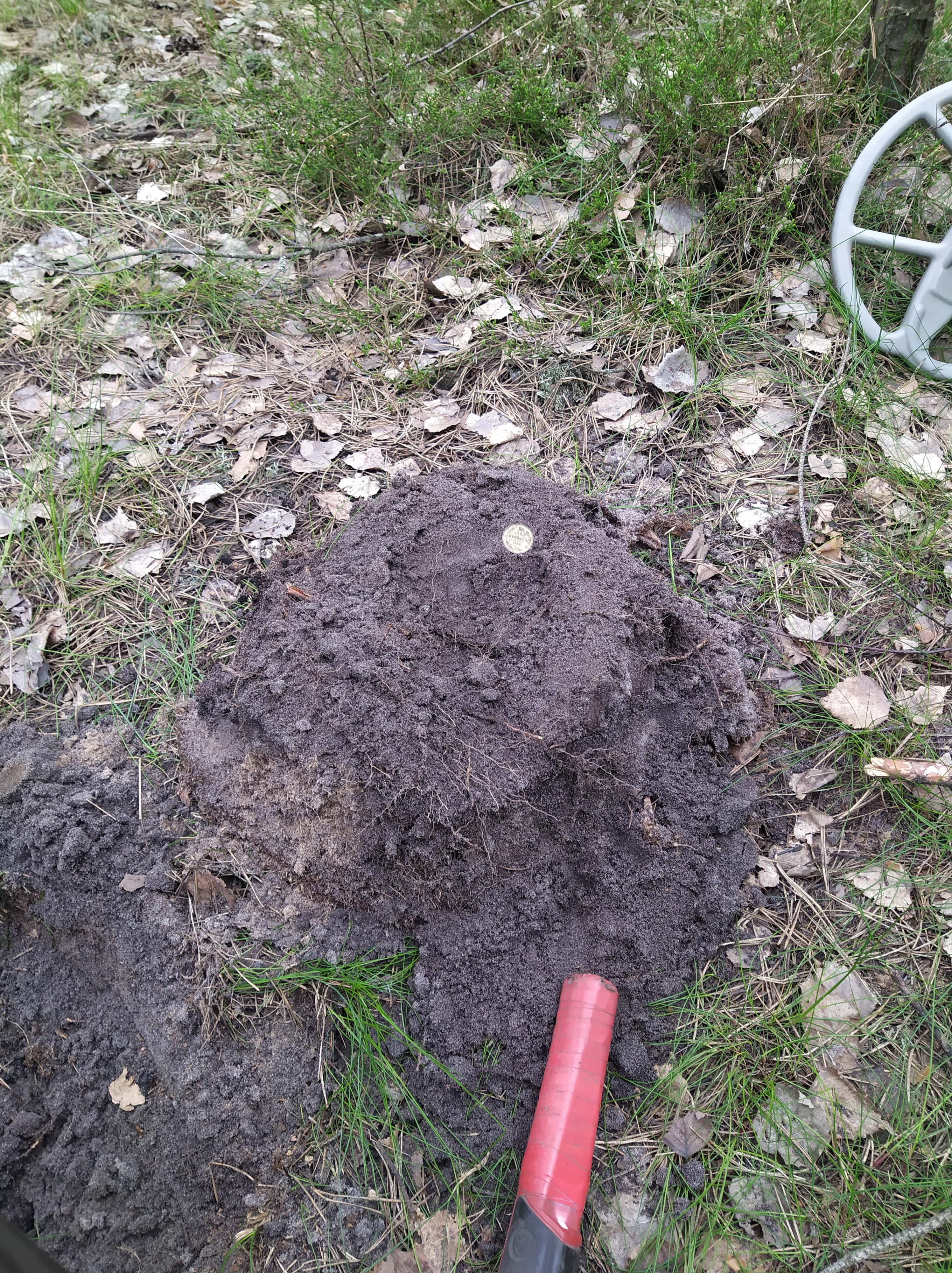 Минулого тижня. Я і тато. Він ходить ще по високому лісі, поки ще не остаточно заріс бур'янами, а я вичісую мої улюблені молоді посадки. Знахідки звичайні, хіба що у мене був міні-кошель, а батько підняв чималу підкову. Всім удачі, панове!:beer: