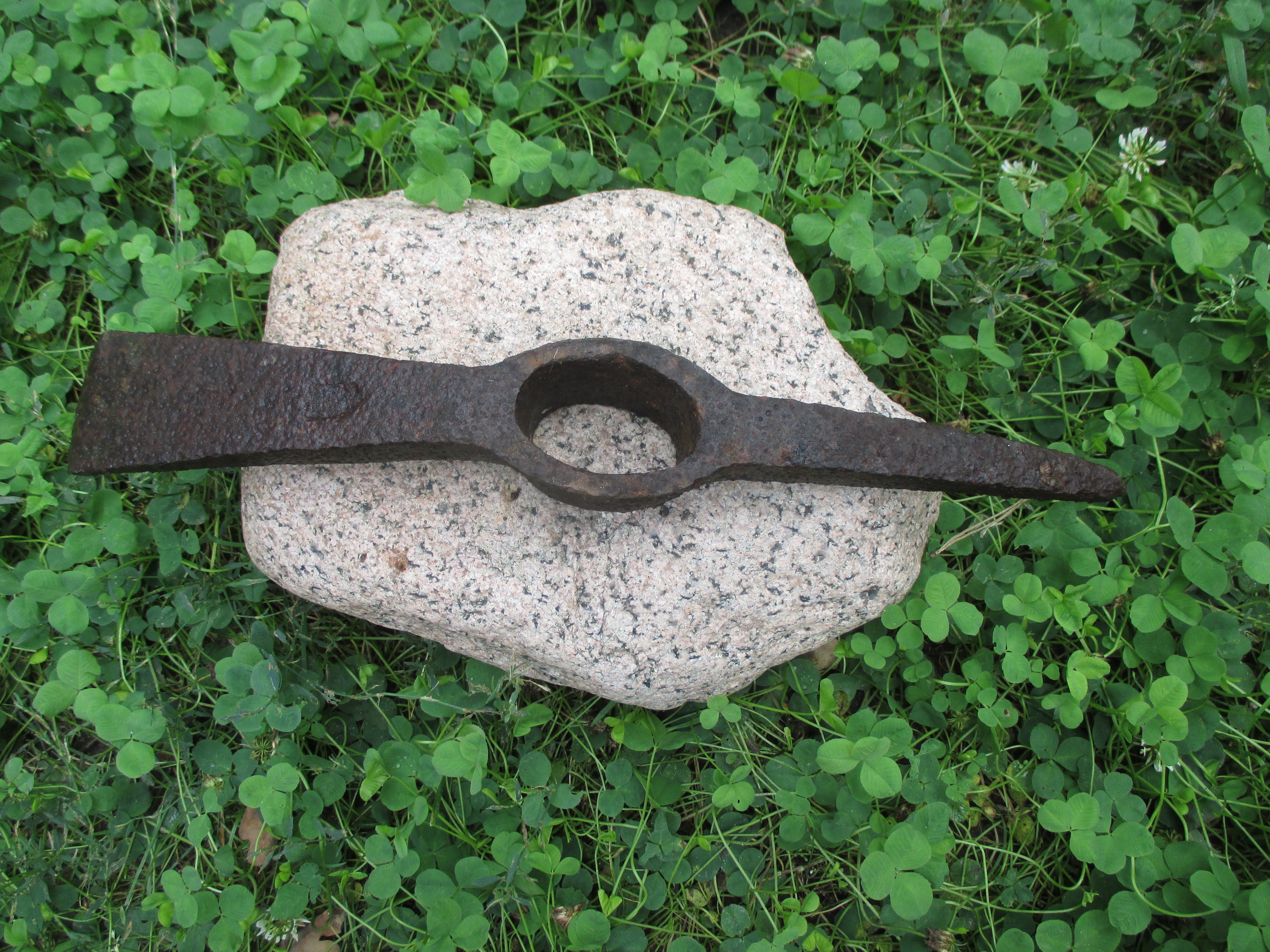 И выбитые места после дождичка в четверг дают хабарок. Может, кто знает, что за гвоздик? Металл цветной. И штука крайняя справа непонятная. На обороте простенькие солярные знаки в виде кружочков.