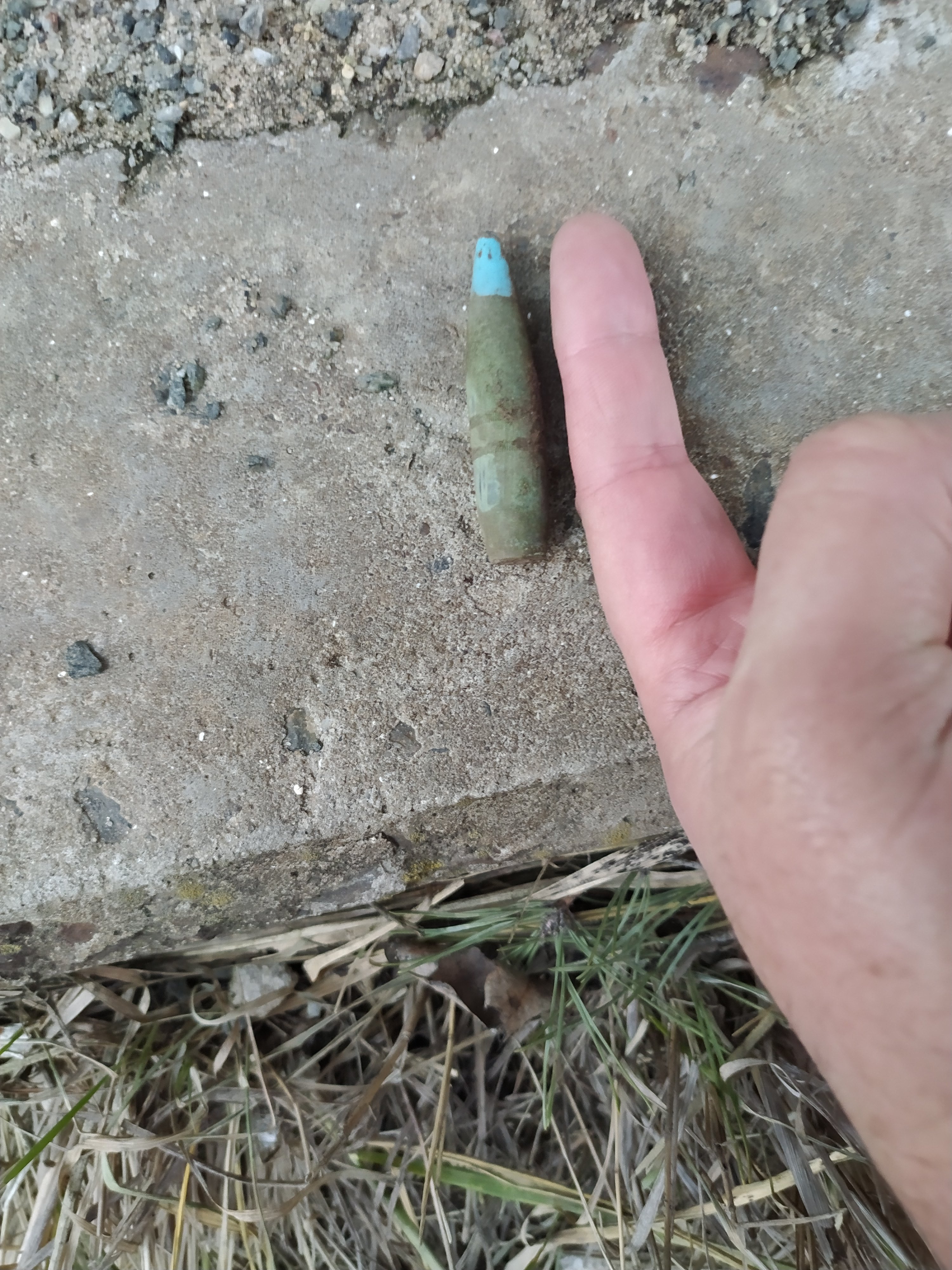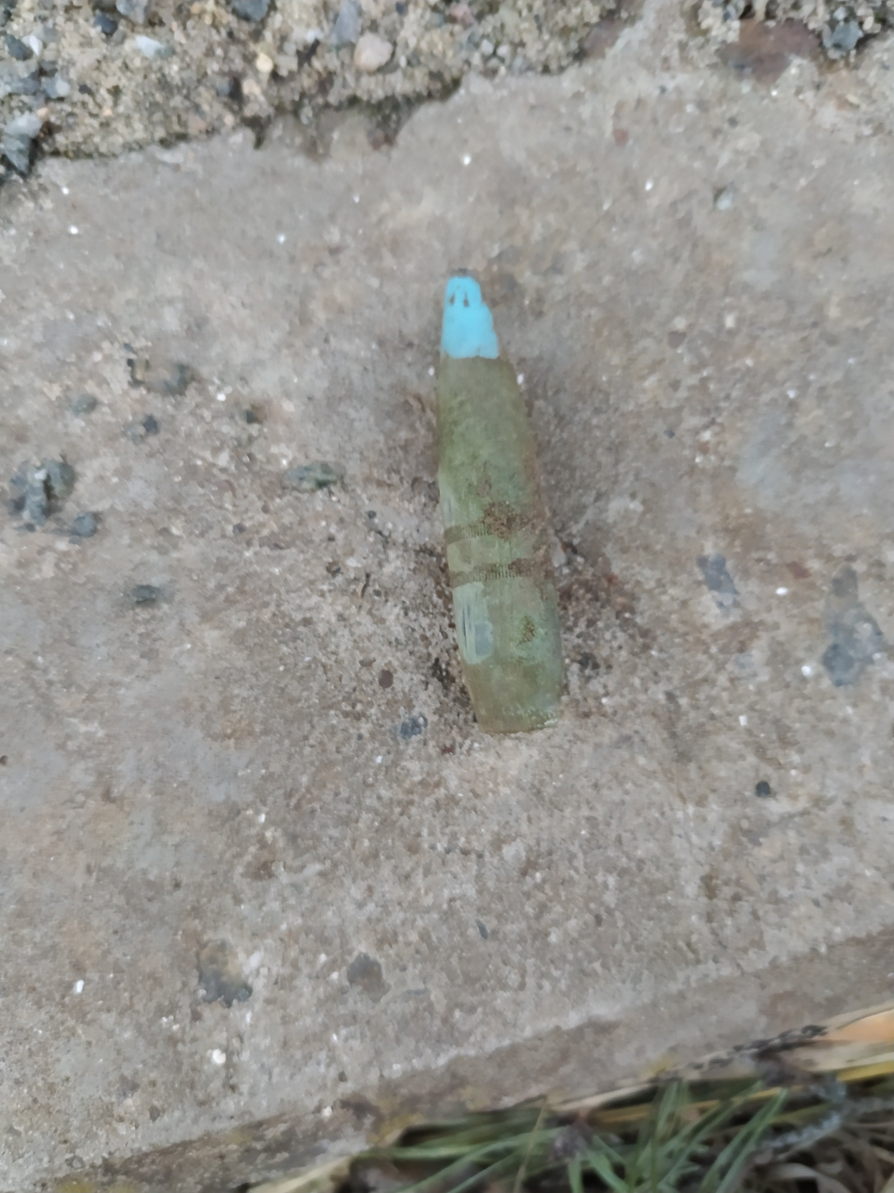 Уважаемые коллеги, раньше такая пуля не попадалась, да ещё с остатком синей краски на конце.