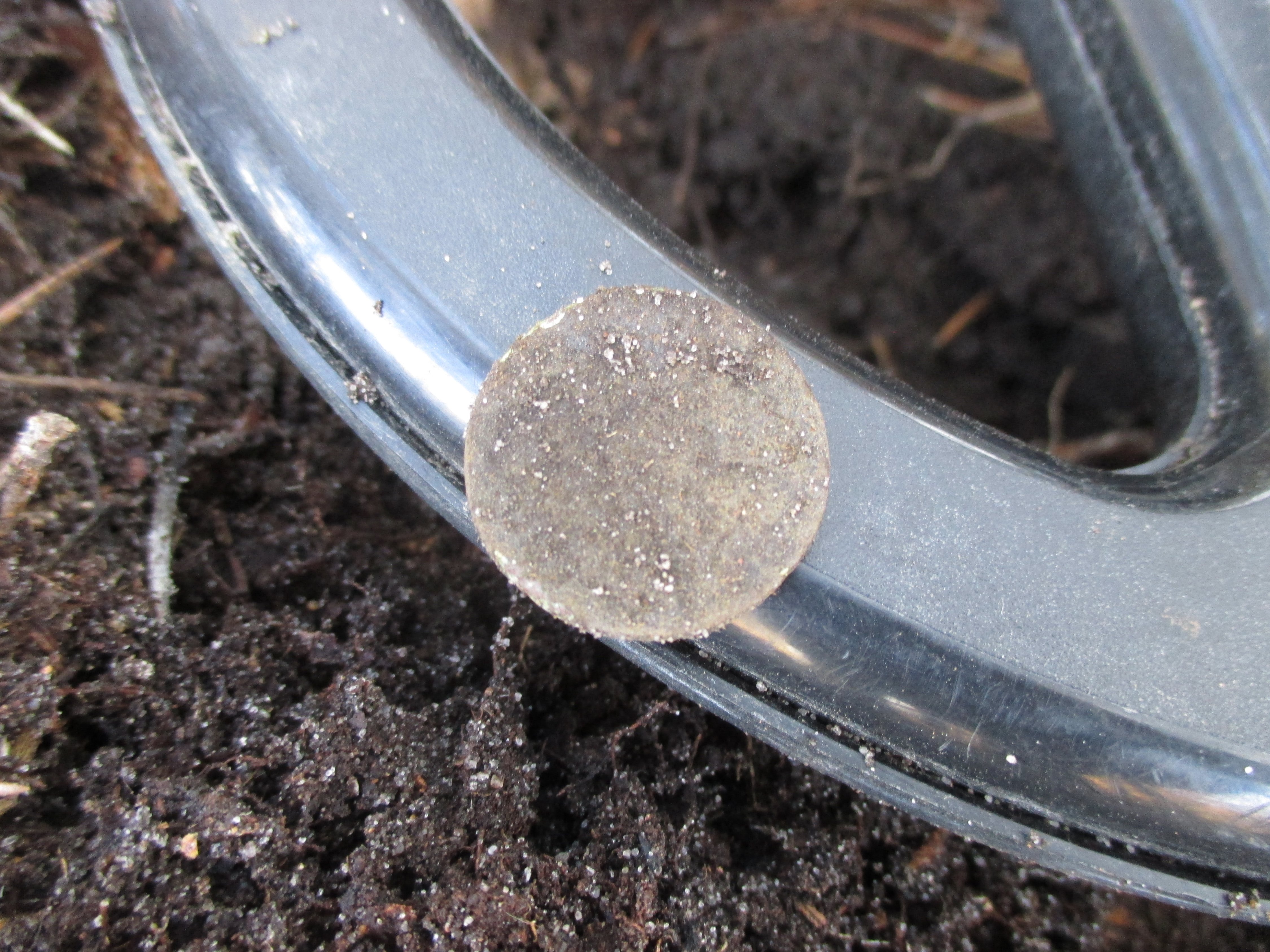 Колёсико от очень недешевой когда то керосиновой лампы немецкого производства HS, серебряная сережка, здоровенная пуля. Видимо, были здесь когда-то неплохие находки, раз в такой, не сильно и копаемой глухомани, участок выколочен в ноль.