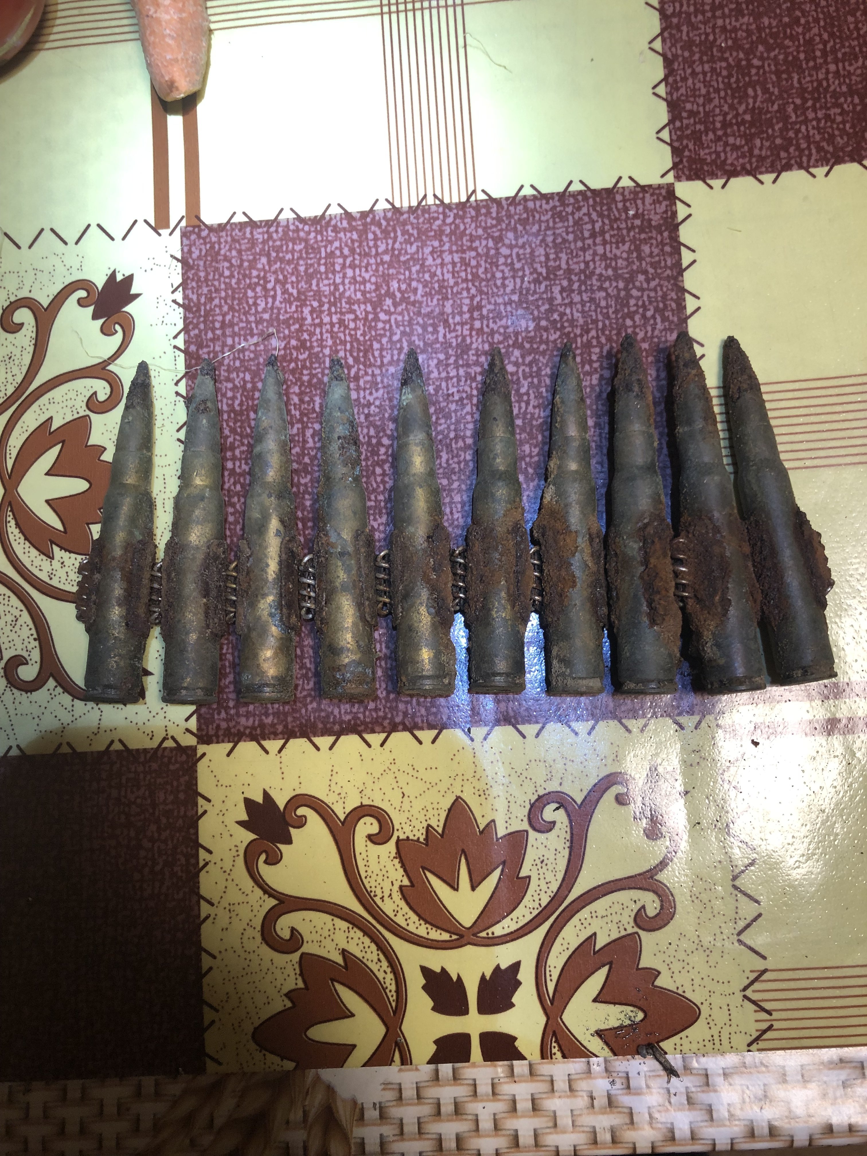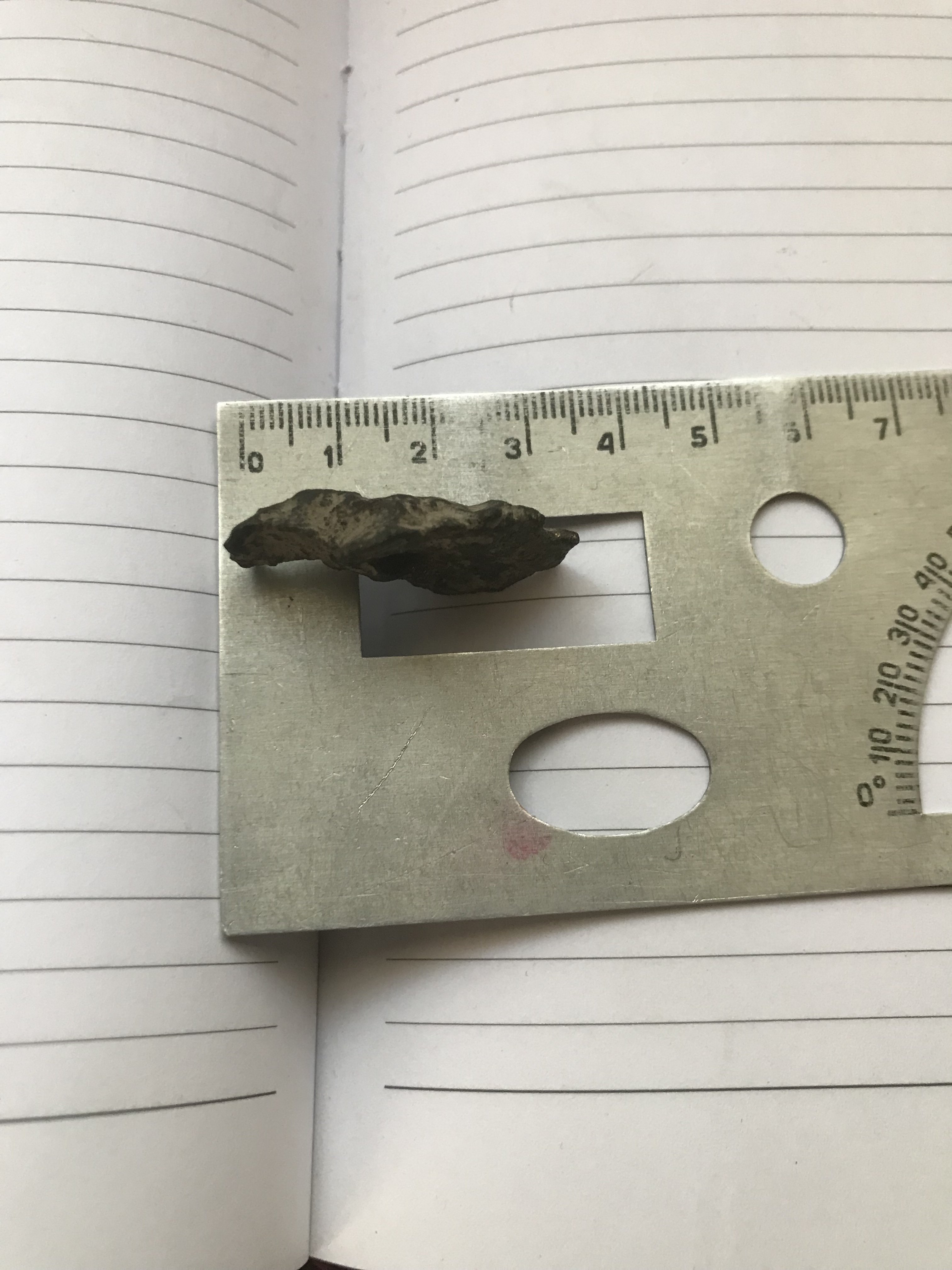 Виявилося ось таке, вага 13 грам схожа на бронзу наче як обпалена високою температурою на поясок від снарядів не схожа,може кому траплялись такі»самородки»