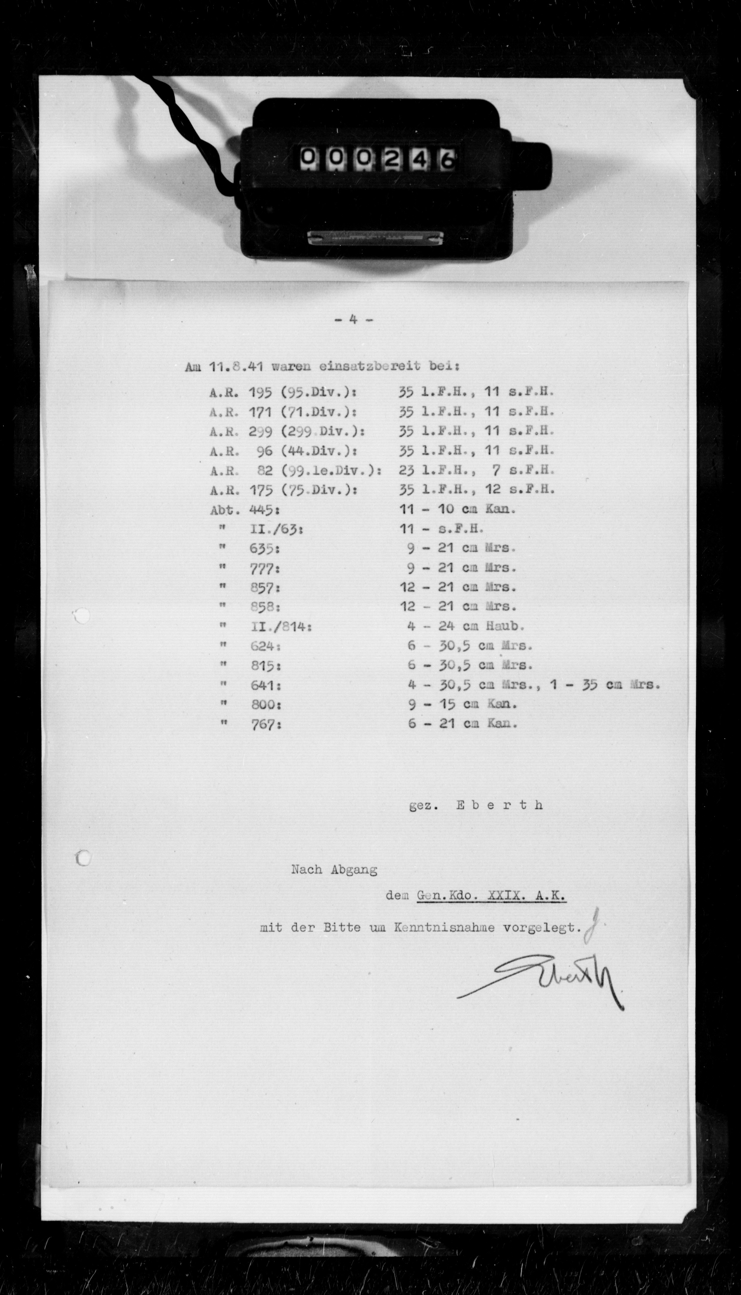 Працюю по книзі Нов-волинського УР Документи 6 армії та корпусів перекладаю. Попався цікавий документ про наявність артилерійських стволів у київському угрупуванні 6 армії станом на 11. серпня Чесно кажучи я там прихуїв. Там навіть 355 см мортира була. Такоє є табличка кількості втраченних стволів. Все ретельно як це у ніиців робиться. Загалом 6 дивізій втратили за два тижні боїв 55 різних гармат з якиз 33 складали 3.7 см колотушки протитанкових дивізіонів. Воно і не дивно. І тільки 22 були втрачені інших типів. 15 см гаубиць - 5 та 2 Флаки.