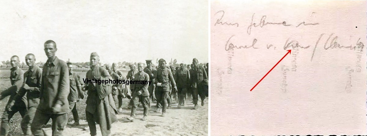 Підпис цієї світлини... Russland gefangene russische Soldaten POW, але на зворотній стороні є, можливо, оригінальний підпис тих часів. Щось схоже в розтяжці каракулів на... Kiew (Ukraina)... ЧИ МОЖЕ МЕНІ МЕРЕЩИТЬСЯ! По метереологічному стану на зображенні цього папірця - це літо... жарке літо, бо шинелей малувато... малувато буде як для початку 20-х чисел вересня 41-го!