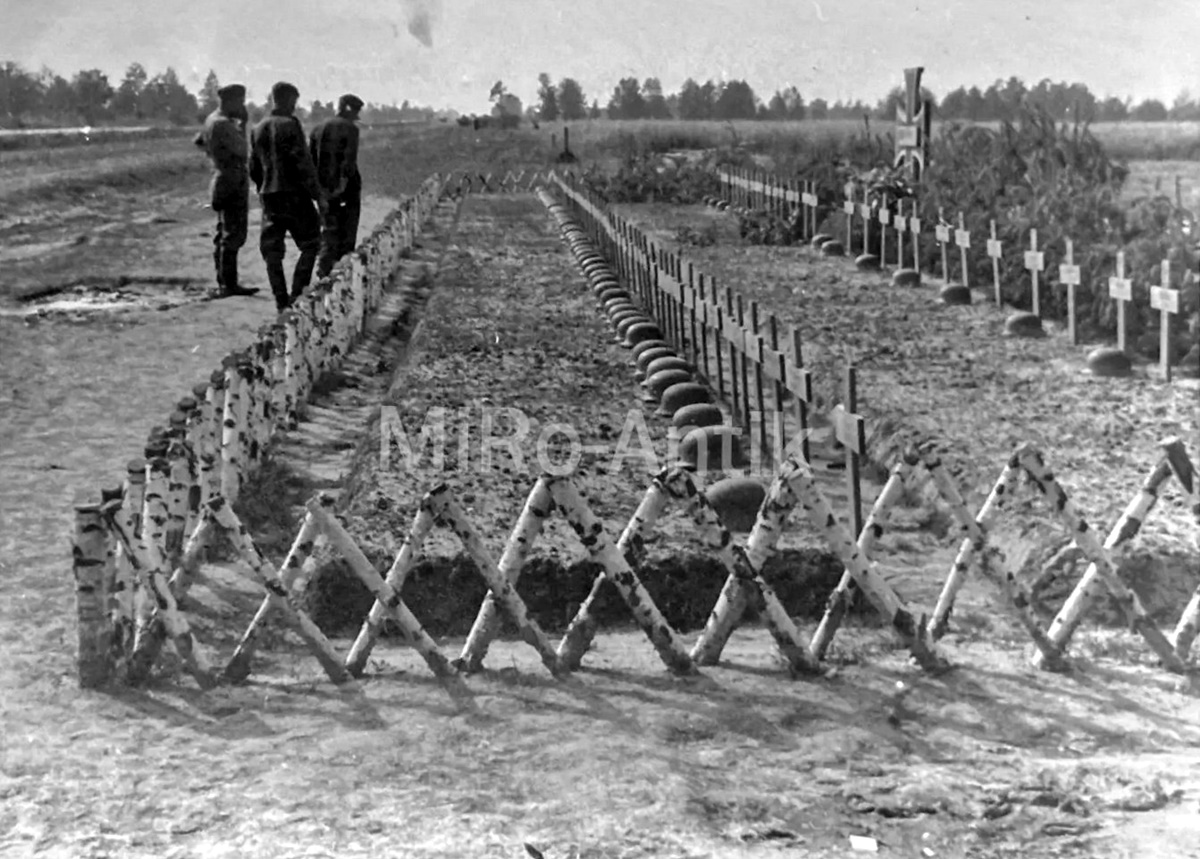 Моя пошана... пане, Росте! Зауважу, що ця світлина не "моя", а кропивчецька... з сторінок ЕБЕЮ! В німецькій міфології присутня згадка, що молода незаміжня німкеня, яка не дочекалася з війни коханого, з часом, сумуючи... в розпачі перетворювалась в... березу. З тих часів було заведено на військових похованнях ставити березові хрести... вибачайте, але що означають... березові паркани... мені невідомо. Можливо, поки привезли березові стовбури для хрестів, вже були встановлені оці простяцькі позначки з прізвищами... можливо. Було зауважено, що березові хрести були більш присутні насамперед ... на тимчасових бойових цвинтарях, якщо поруч виявляли саме цей тип дерева... як кажуть - все робилось на скору руку. На офіційних збірних цвинтарях повинні були встановлюватись стандартні поіменні дерев,яні хрести в формі нагородного залізного хреста, але... але в дійсності встановлювали щось по можливостях. До речі, остання світлина нагадала бойовий цвинтар в с. Шандра на Букрині по 43-му... траншейні ряди могил на схилі з глибиною по пояс... в 60-70-ті роки більш як 70% могил було знищено... був наказ з парткому району, брати грунт для насипки дороги... саме з місця могил... на скосі схилу, як на цій світлині.