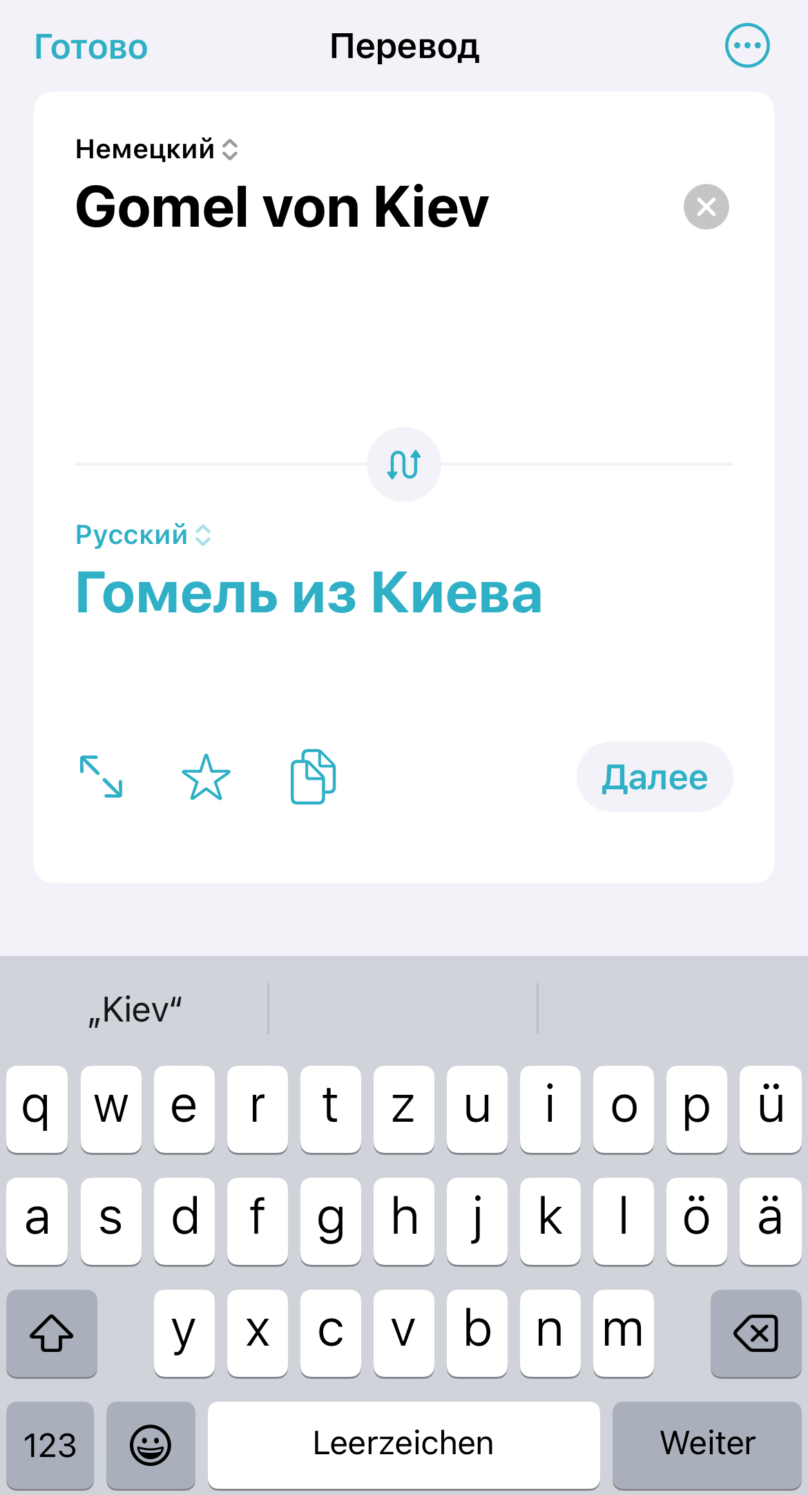 Німецькі каракулі складно розбрати. Дійсно von Kiew там проглядаеться. Але в дужках там нібито Україна написано. (що логічно) Але передтим нібито слово Gomel ніби то..чи це щось інше?