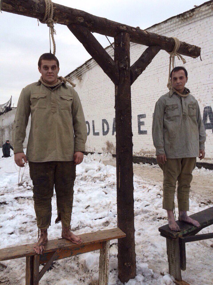 Немецкие овчарки не аутентичные. Послевоенная порода уже. По сабжу все как вседа. Виселицы, фошызды, шмайстеры. Победобесие. п.с. Вот работа эстонских камерадов.