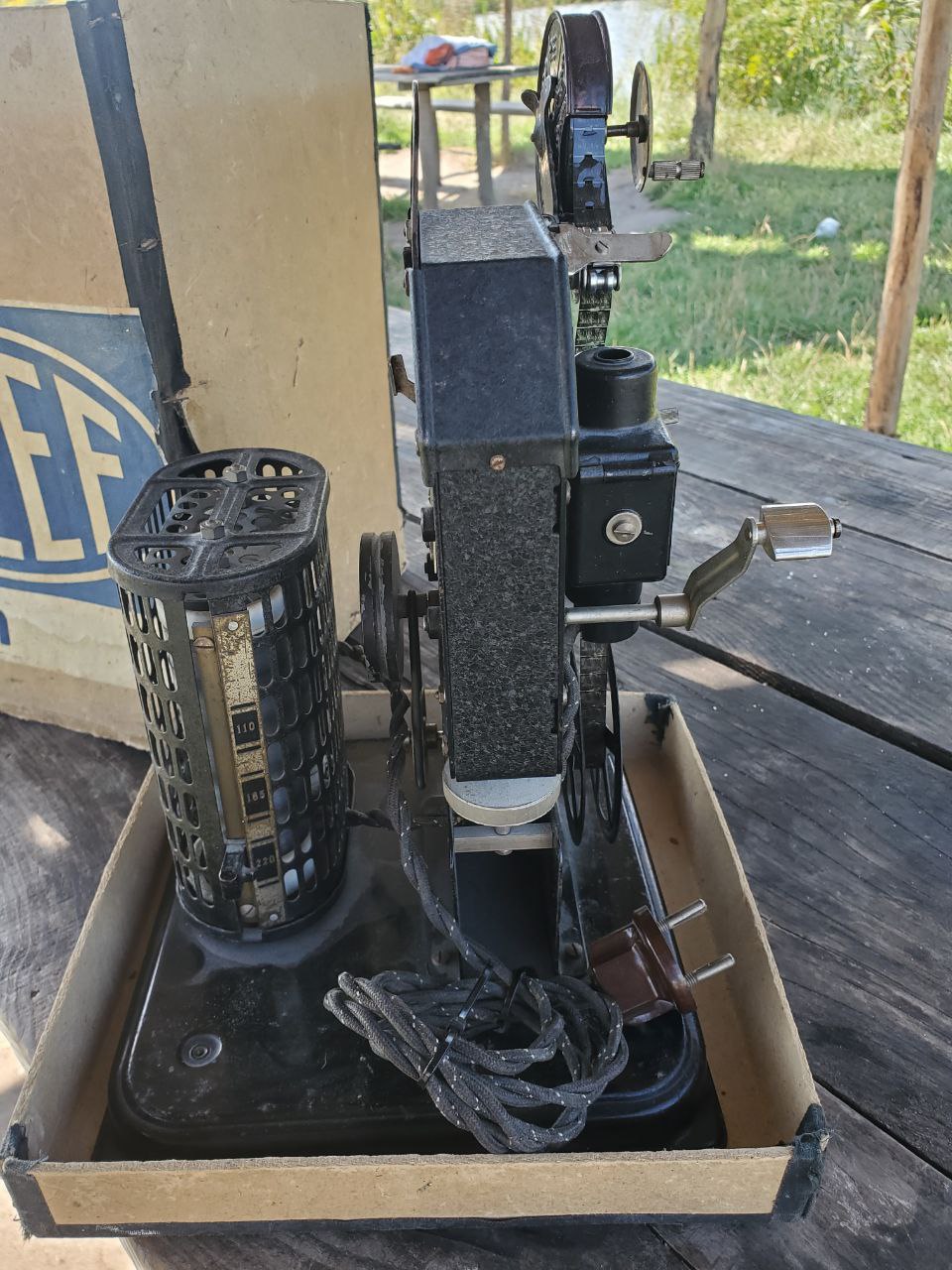 Вітаю шановна спільнота! Трапилося на горищі ось така чудова знахідка , кінопроектор Вермахту тридцятих років в відмінному стані, з рідною коробкою та записом на плівці! Стан близький до ідеального, зверніть увагу на збереження вилки та провіда. На плівці зображені солдати в військовій формі та німецьких касках. Планую скоро включити та прокрутити фільм. На Вашу думку яка вартість такого раритету? враховуючи що плівка , можливо раніше не бачена світом) з пов. Макс