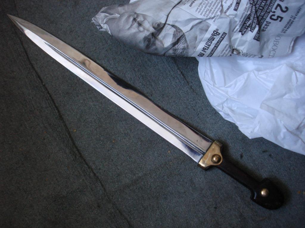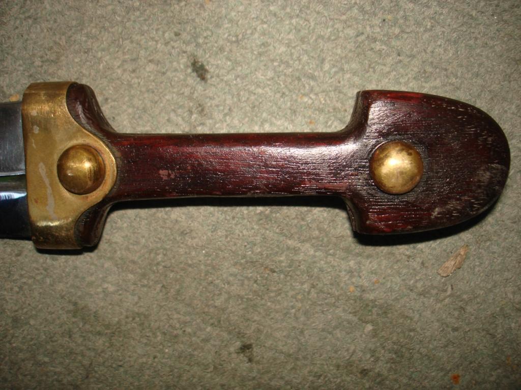 Если кто знает-подскажите чьих будет? Клейм нет, дерево родное, рукоять короткая 11см. клинок 36.5см. ширина 35мм.