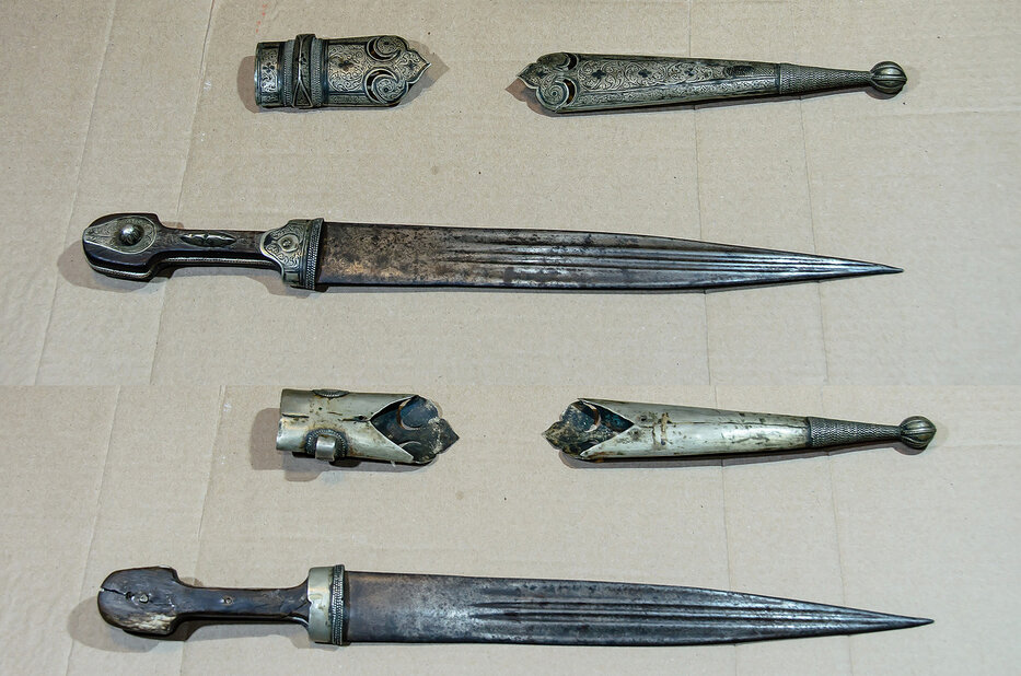 На мій погляд, взяли оригінальний кінжал ККВ зняли з нього мільхіорову фурнітурі і наділи срібну, зробили аля офіцер. Хотя я і зустрічав переробки, але вони виглядають геть інакше.