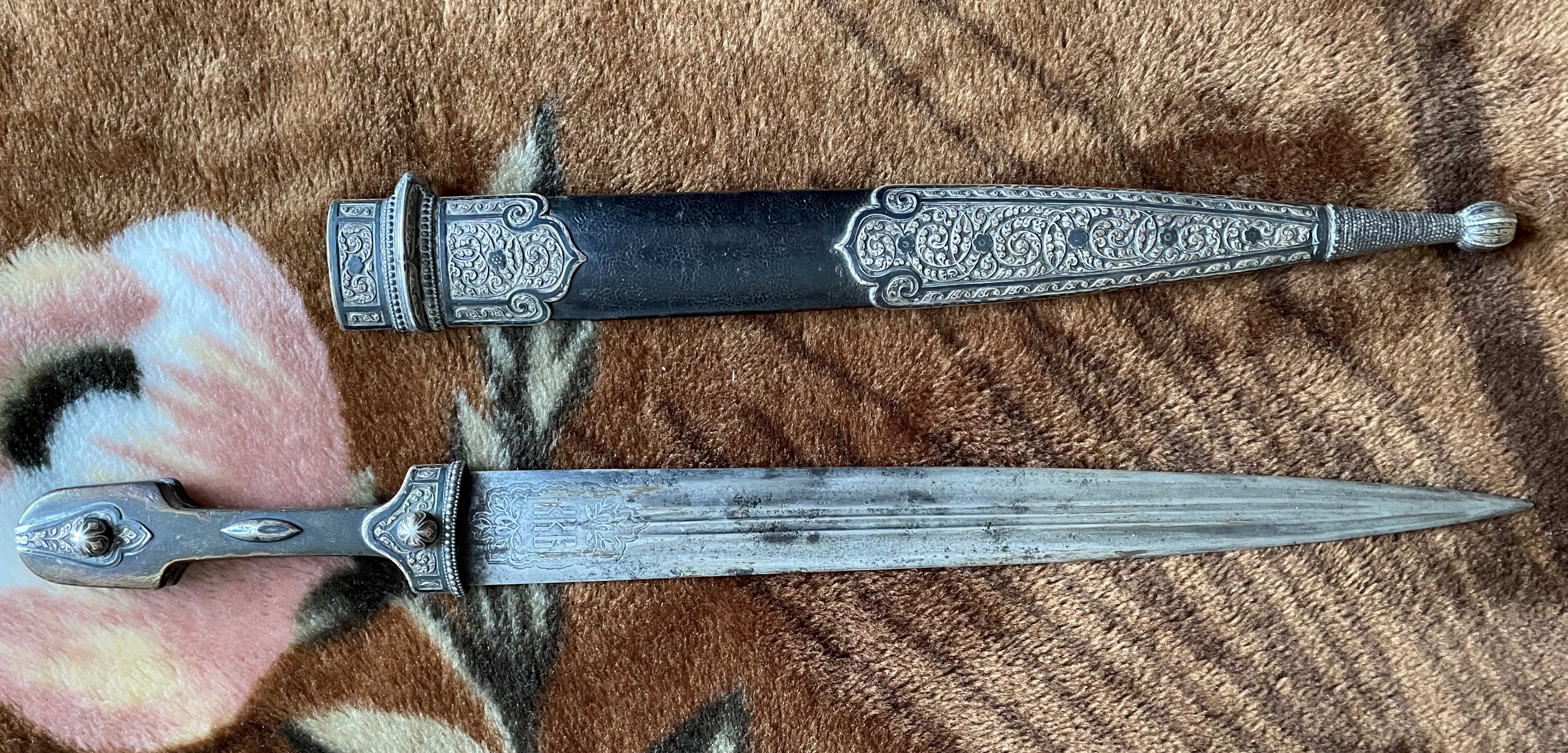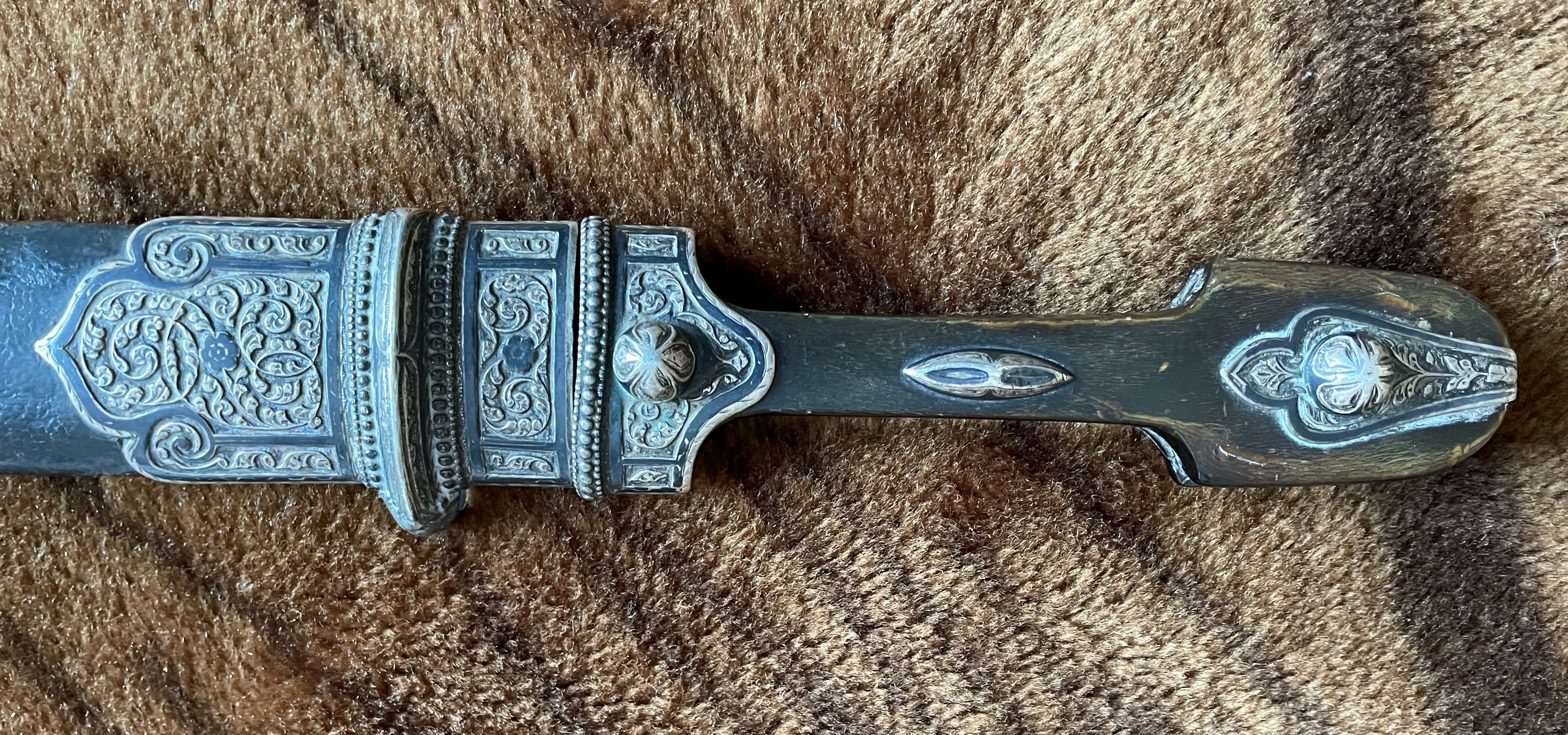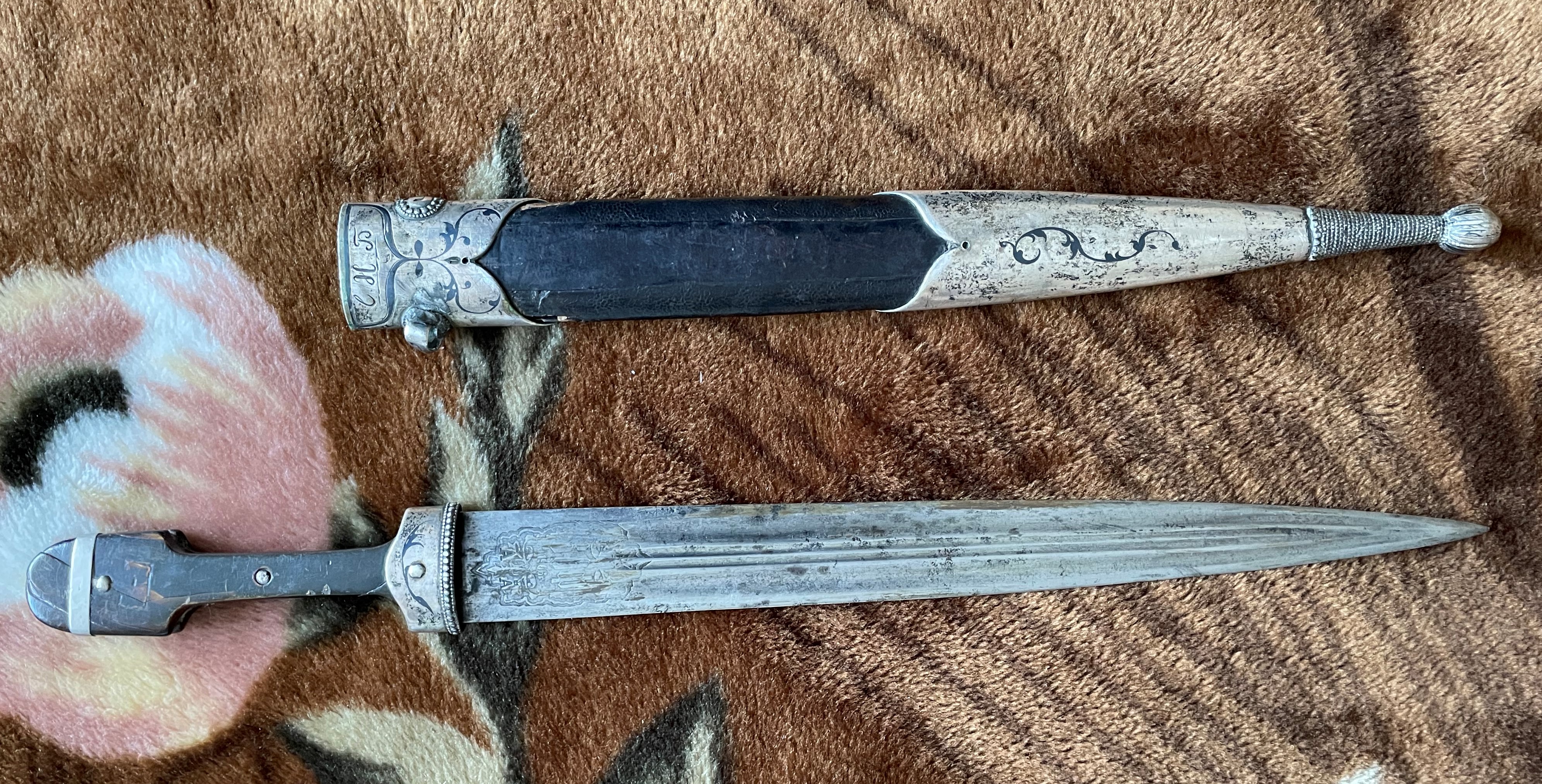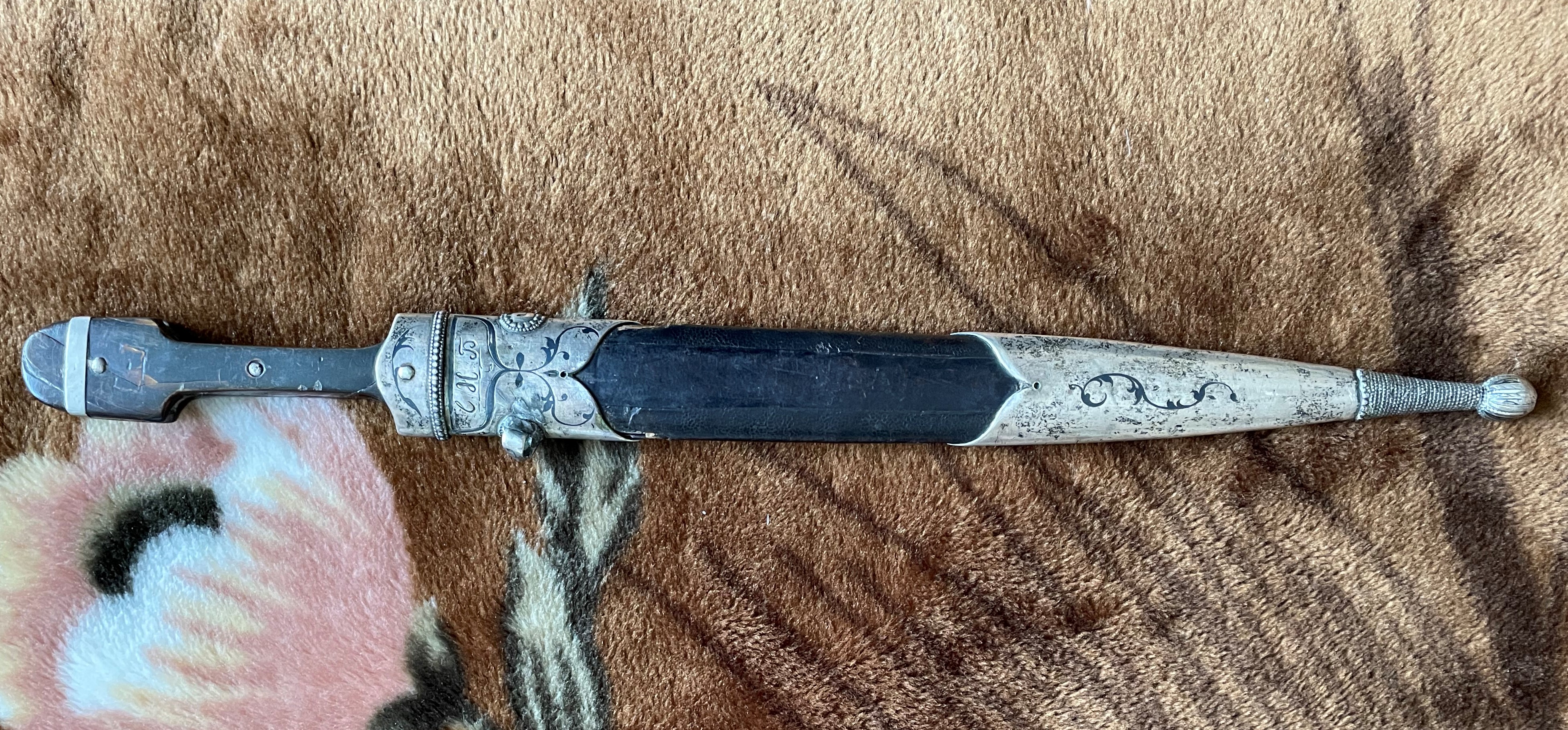 Вполне нормальный кинжал .Серебро стояло и у простых .зажиточных ,казаков.Офицер ,зачастую отличался "белой костью" .С лицевой стороны или с обеих (всё от состоятельности) ,но не факт. А реальный факт в том, что по уставу казачьих войск офицерское оружие не должно отличаться от рядового.