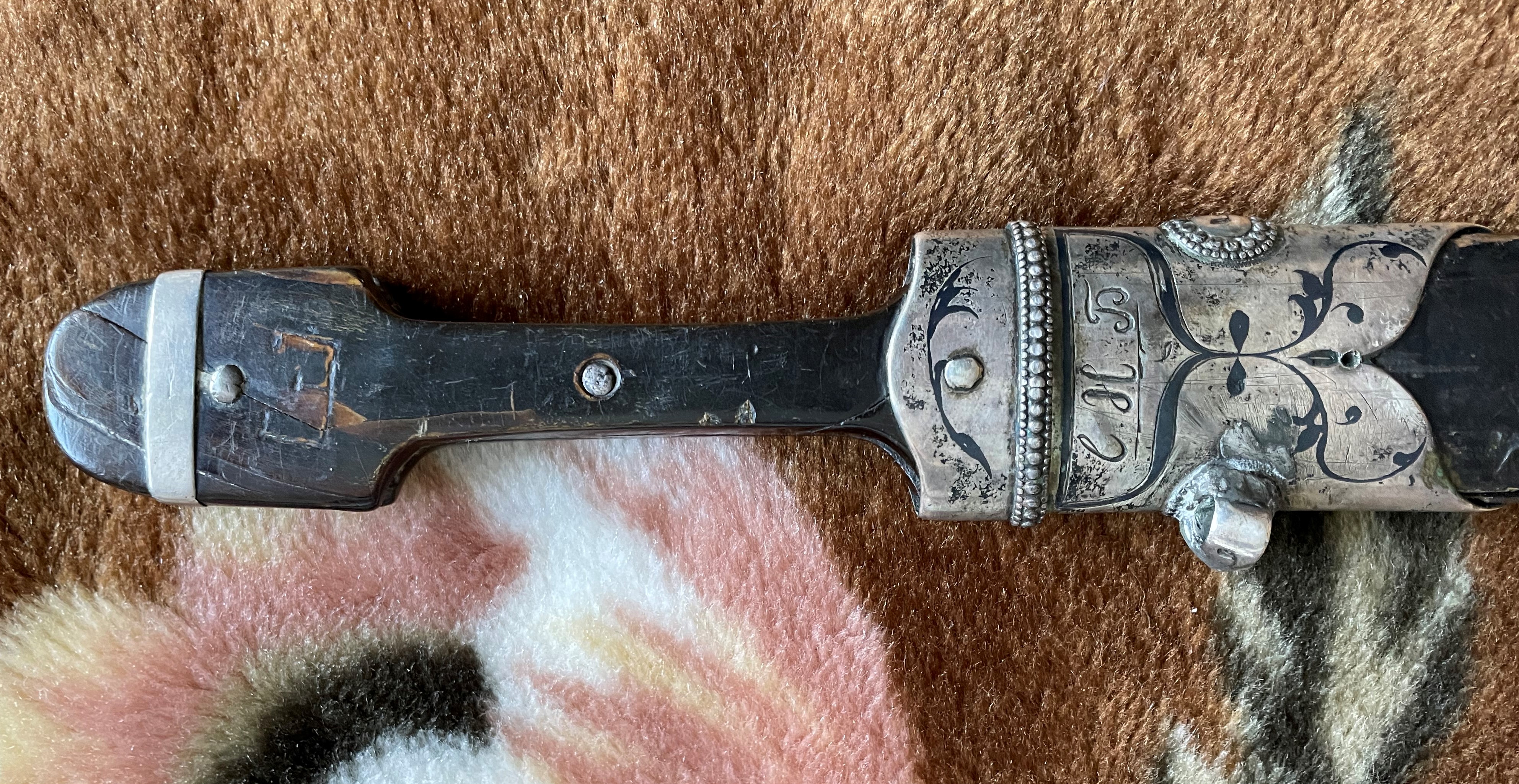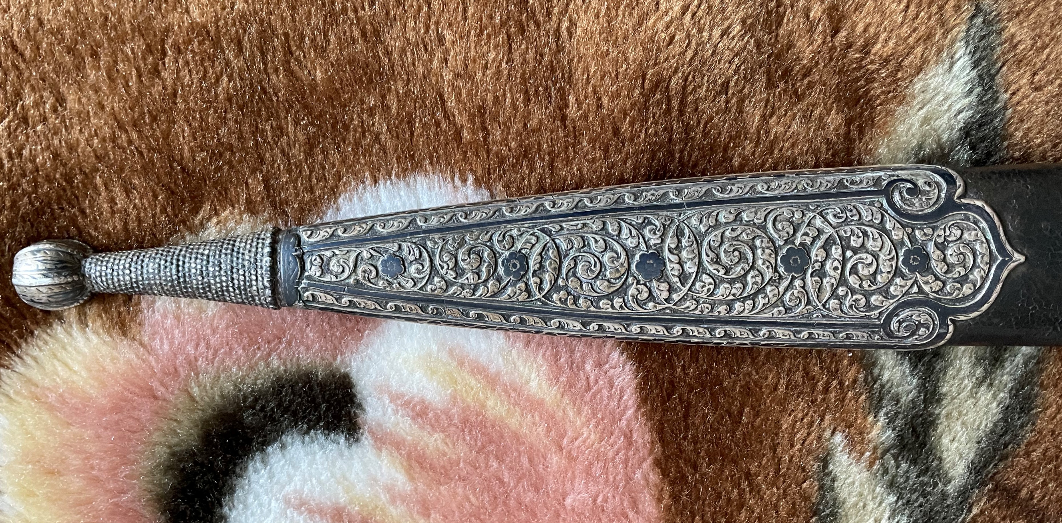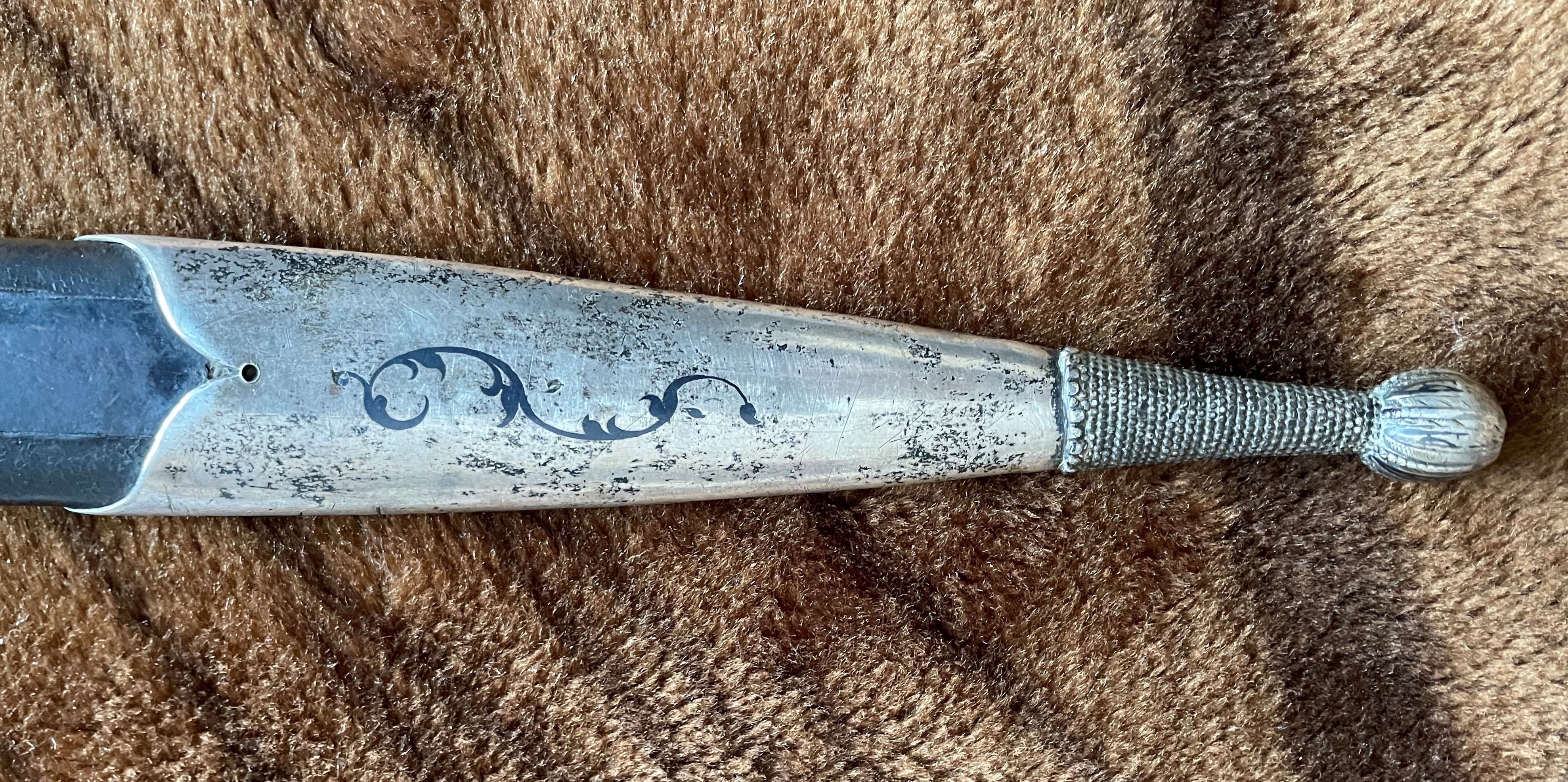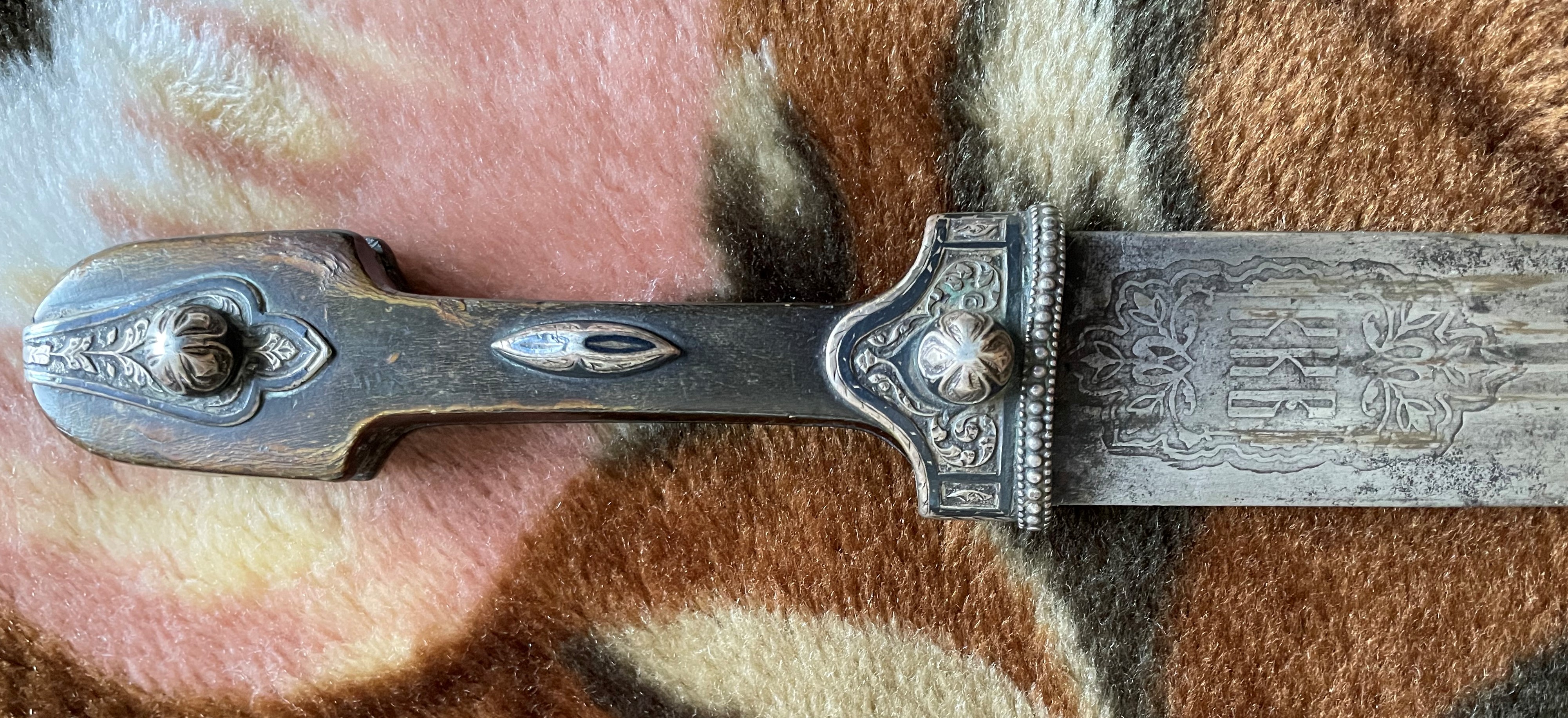 Вполне нормальный кинжал .Серебро стояло и у простых .зажиточных ,казаков.Офицер ,зачастую отличался "белой костью" .С лицевой стороны или с обеих (всё от состоятельности) ,но не факт. А реальный факт в том, что по уставу казачьих войск офицерское оружие не должно отличаться от рядового.
